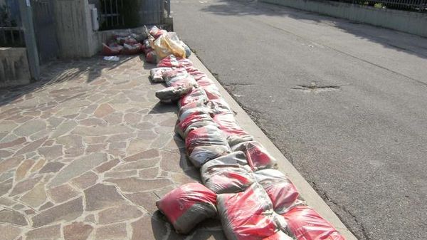 Non è Venezia, dove ci si prepara all'arrivo dell'acqua alta. Non siamo in riva a un fiume che sta per esondare. Siamo ad Azzano: qui i residenti di via Foscolo, quando sta per arrivare un temporale, preparano una barriera coi sacchetti di sabbia.