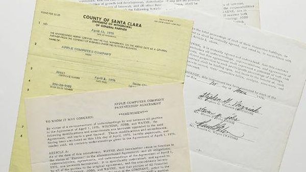 Apple/ Venduto a 1,59 mln Usd documento di nascita dell'azienda Battuto all'asta 15 volte tanto la sua stima iniziale