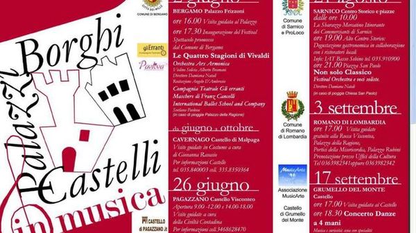 Inizia giovedì 2 giugno il festival «Borghi, Palazzi e Castelli in Musica», l'inaugurazione alle 17.30 nel cortile di Palazzo Frizzoni con il concerto spettacolo delle Quattro Stagioni di Vivaldi. In programma altri 10 eventi nei cortili e palazzi storici.