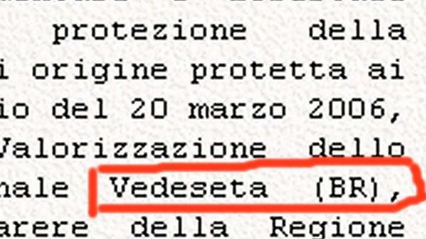 Siamo poi certi che lo «Strachitunt» è bergamasco. Mentre non sono ancora conclusi i festeggiamenti per il raggiungimento dell'agognato Dop, la protezione della denominazione d'origine, la Gazzetta Ufficiale fa presente che Vedeseta è in provincia di Br, ovvero Brindisi.