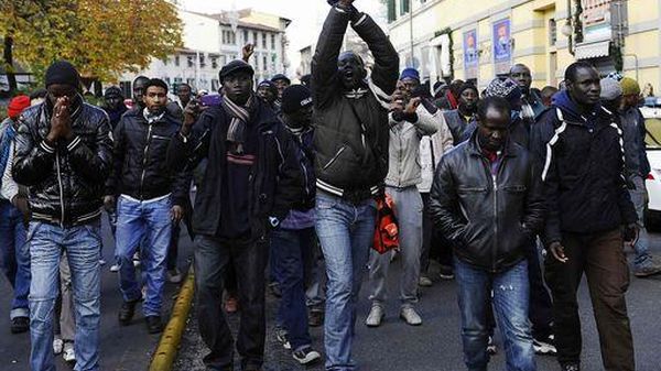 Agguati Firenze/ Parte corteo Firenze con Bersani,qualche disagio Abbraccio tra il segretario Pd e portavoce comunità senegalese