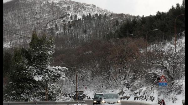Spazzaneve in funzione sui monti Nebrodi. Nevischio a Salina