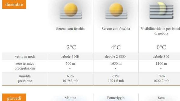 Weekend con nebbia e pioviggine Ma a Natale splenderà il sole