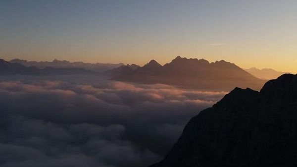 Un paesaggio da sogno si è aperto in questa domenica d’inizio inverno al rifugio Albani: la parete della Presolana oltre le nuvole.