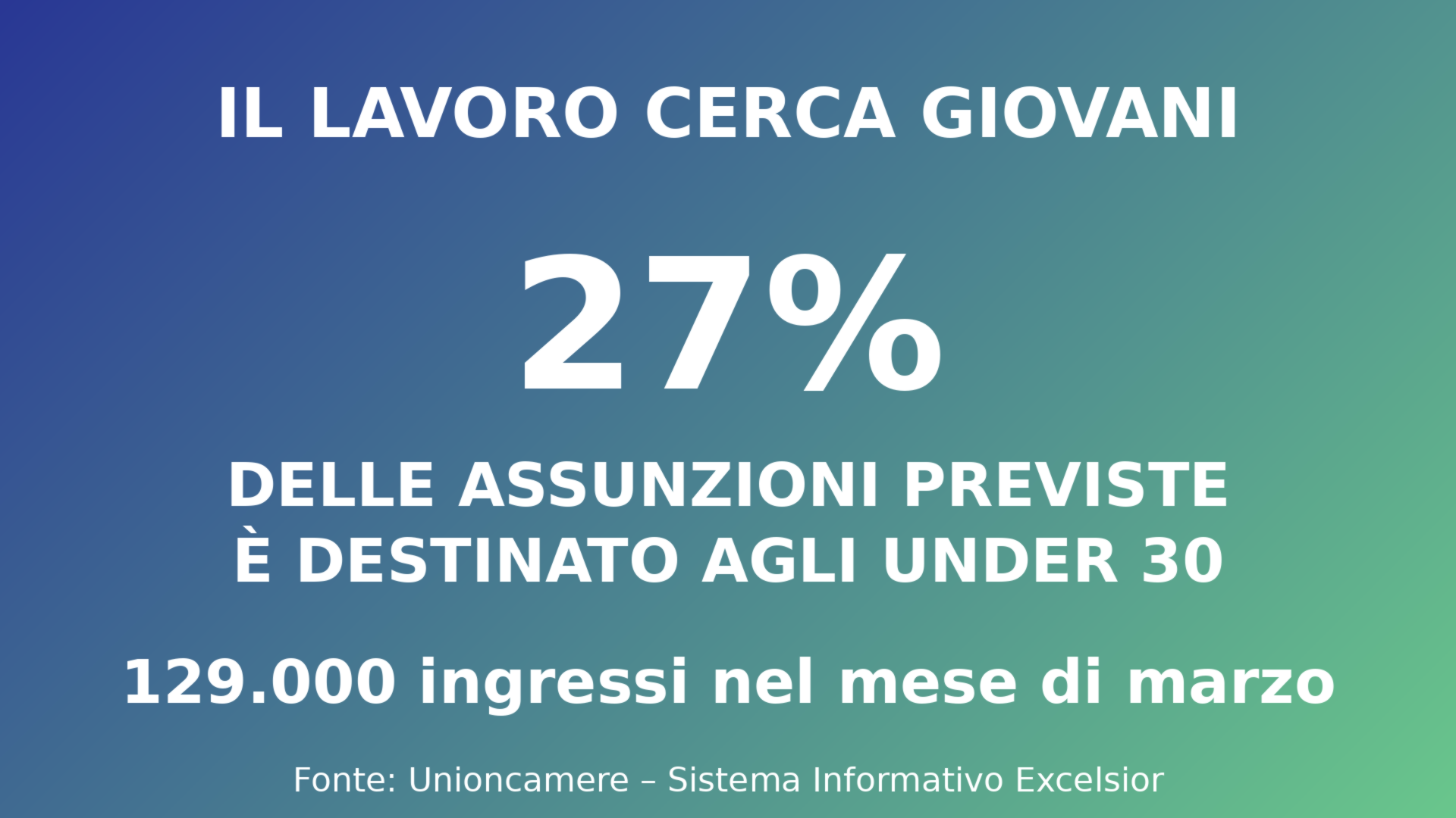 OCCUPAZIONE. Il bollettino Excelsior fotografa un mercato del lavoro che continua a cercare nuove generazioni: a marzo oltre 129 mila ingressi sono destinati agli under 30. Ma quasi un’assunzione su due resta difficile da realizzare per mancanza di candidati o competenze adeguate.
