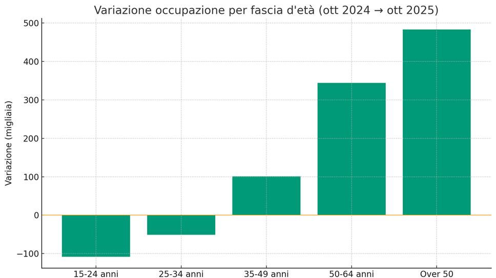 Le statistiche di ottobre arrivano sempre come un bollettino che scandisce l’umore del Paese. Stavolta raccontano un’Italia in apparente salute: 75 mila occupati in più, disoccupazione al 6%, tasso di occupazione al 62,7%. Tutto sembra andare nella direzione giusta, come se il mercato del lavoro avesse finalmente trovato un ritmo stabile dopo anni di incertezze. Eppure basta fare quello che facciamo ogni settimana all’Osservatorio Delta Index – aprire la lente generazionale, mettere in colonna le età, osservare chi sale e chi scende – per scoprire che la fotografia complessiva nasconde un’inclinazione pericolosa.