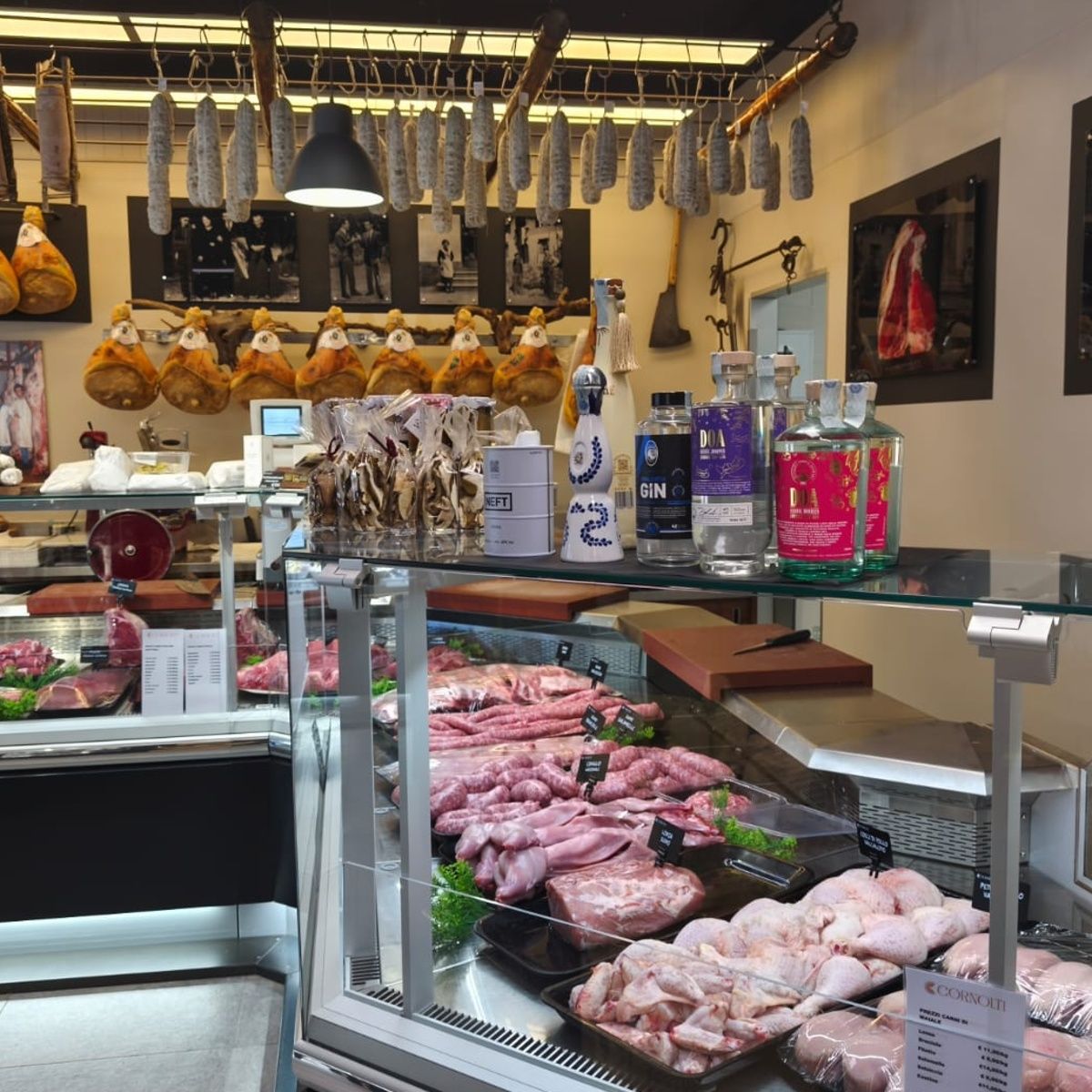 Tra salumi di propria produzione, stagionati nella cantina del locale, a formaggi ricercati, di diversa provenienza e con diverse affinature, anche molto particolari, senza dimenticare tutta la proposta di gastronomia tra cui spicca la pasta fresca, prodotta ogni giorno nel laboratorio a vista. Prodotti che trovano il loro perfetto spazio sulle tavole di ogni giorno, a fianco ad alcune chicche che, servite, sono delle vere e proprie coccole.