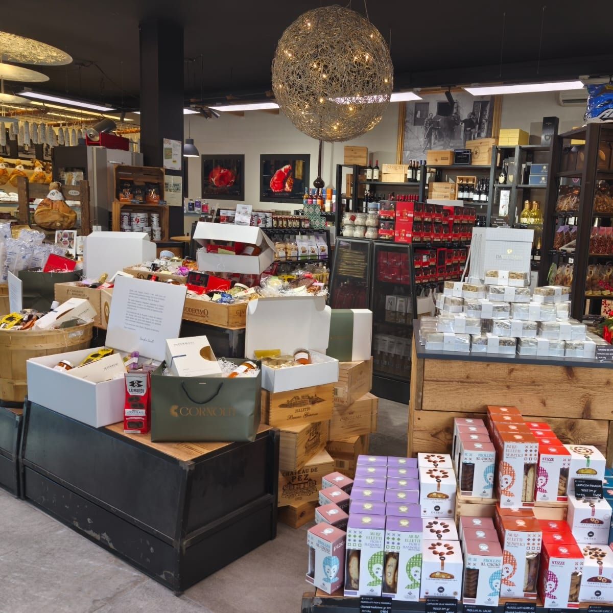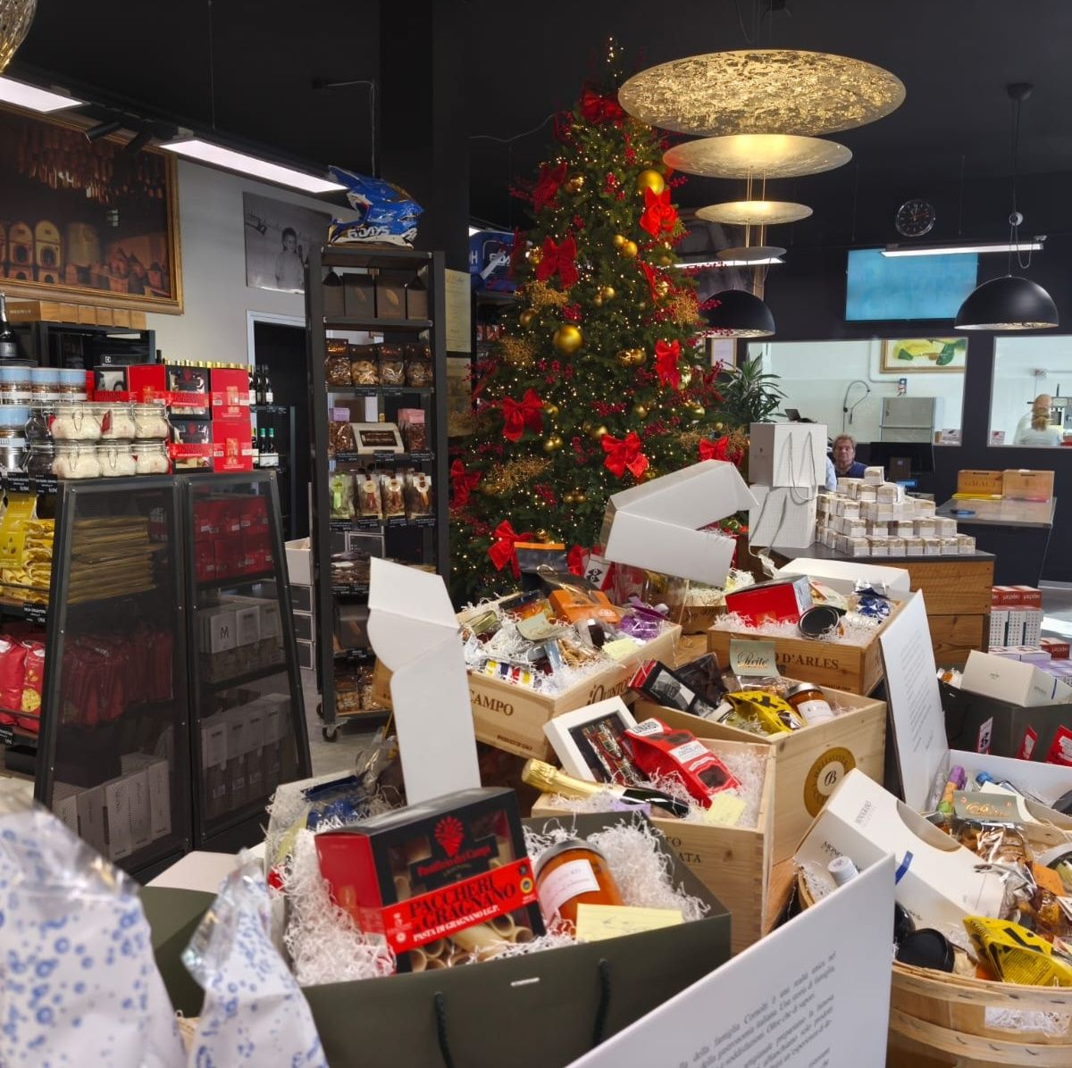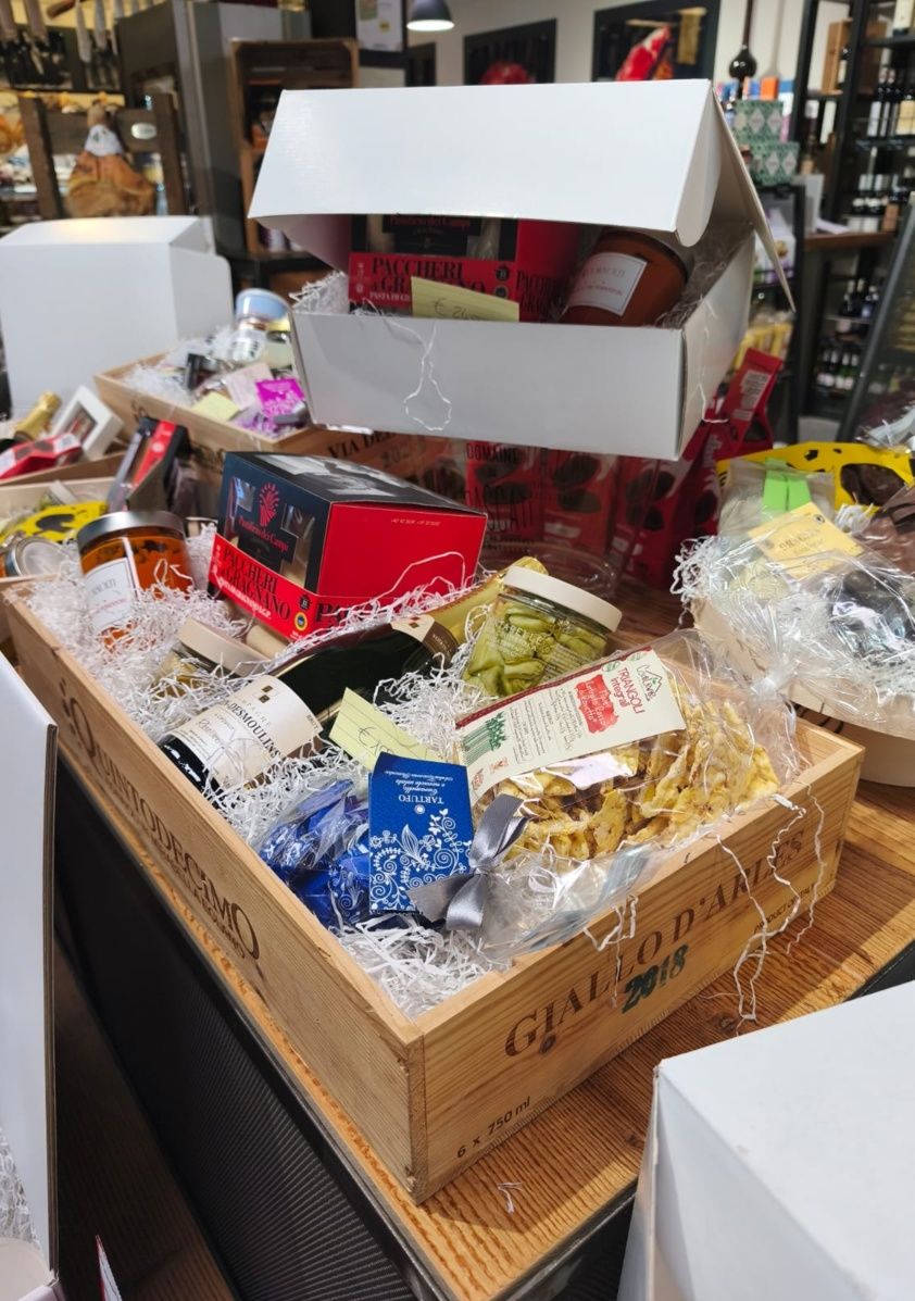 Con tutte queste prelibatezze si possono comporre anche dei cesti personalizzati , ottime idee regalo sia per le aziende che per i privati. E come ogni anno il laboratorio lavora a pieno regime per preparare il menù d’asporto delle feste. Un ricco menù della gastronomia che parte dagli aperitivi, con salumi e formaggi da abbinare ad una etichetta d’eccellenza dalla cantina del Cornolti, passa attraverso una bella selezione di antipasti sia di terra che di mare, per poi approdare nei primi piatti, con la vasta proposta di pasta fresca fatta in casa, sia classica che ripiena, con sughi e salse in abbinamento.