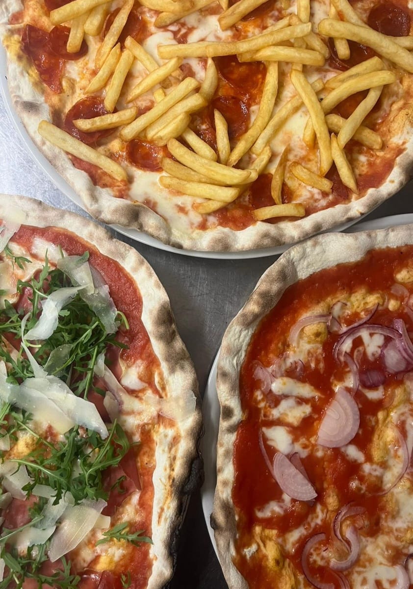Tra le più amate c’è la Pizza Mirella, dedica alla mamma: pomodoro, mozzarella, pomodorini e, in uscita, bufala, prosciutto crudo e basilico. Il percorso di Fabio è fatto anche di formazione e di un continuo mettersi in gioco: la scuola, la Nazionale Italiana Pizzaioli, la partecipazione all’Expo per la pizza più lunga del mondo. Esperienze che hanno consolidato tecnica e passione.