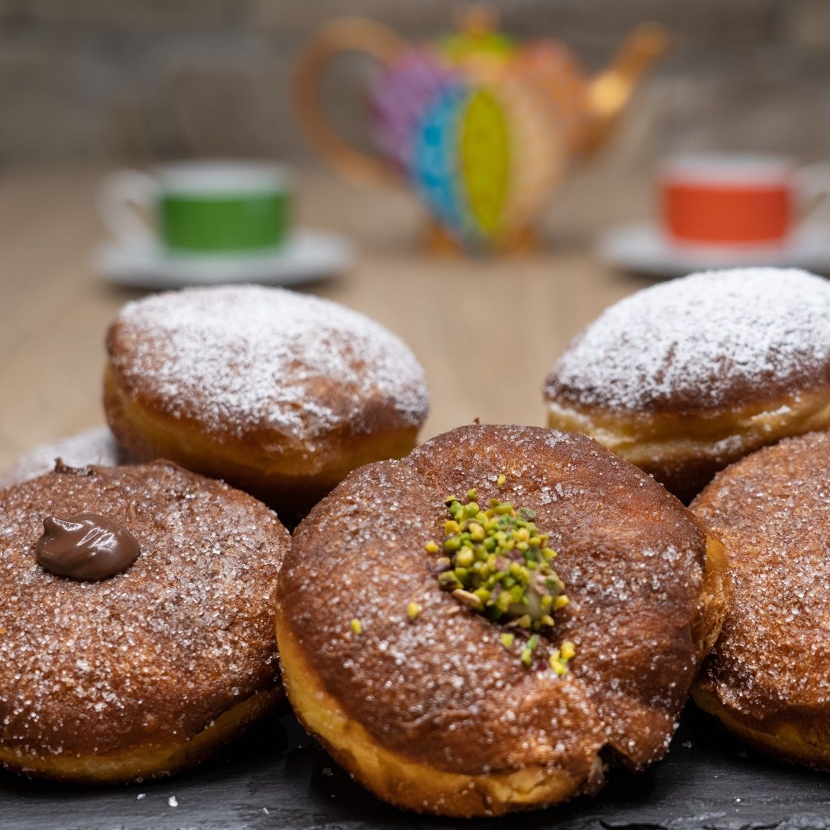 In questa stagione sono i dolci del carnevale a rubare la scena. Ci sono i grandi classici della tradizione: frittelle con mela e uvetta, tortelli ripieni di crema, chiacchiere leggere e croccanti, krapfen soffici impastati e farciti in casa – una rarità sempre più preziosa – con crema, marmellata, pistacchio, cioccolato o ricotta. Tutto viene prodotto fresco di giornata, seguendo ogni passaggio con attenzione artigianale.