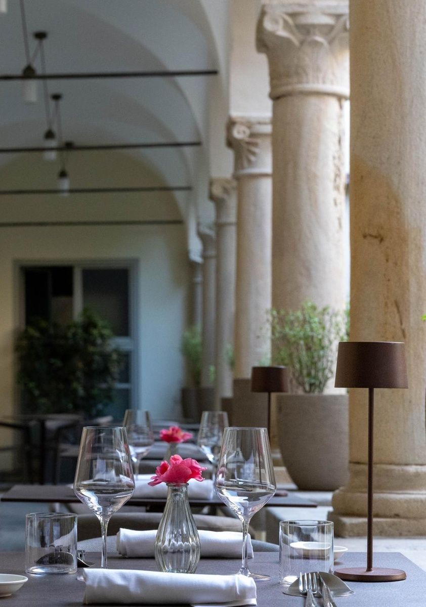 Ricavato all’interno di un ex monastero del Trecento, è un luogo che affascina al primo sguardo. Le antiche volte, gli affreschi ottocenteschi e il chiostro interno creano un’atmosfera unica, dove ogni momento diventa un viaggio tra storia e bellezza.