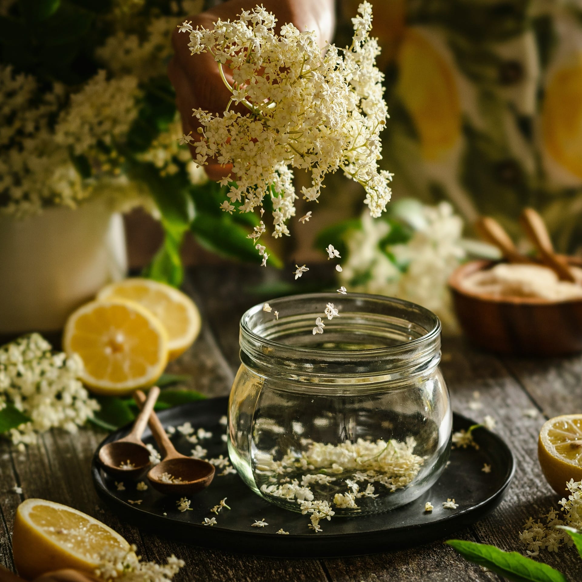I fiori di sambuco vanno raccolti in una giornata asciutta e non vanno lavati sotto acqua corrente, perché perderebbero il polline e tutto il loro aroma. Per pulirli, potete scuoterli delicatamente eliminando con le mani eventuali fiori rovinati e altre impurità. Portate a ebollizione l’acqua in una pentola, poi spegnete il fuoco e aggiungete i fiori, la scorza del limone e il suo succo. Lasciate in infusione per circa 24 ore, coprendo il tutto con un coperchio. Passato il tempo necessario, filtrate tutto il liquido con un colino a maglie fini o meglio ancora con una garza. Strizzate i fiori per ottenere tutto il nettare.