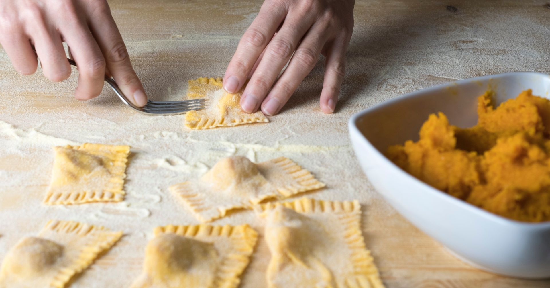 I ravioli di zucca del nostro menù si fanno inoltre portavoce di un territorio agricolo, di ingredienti di stagione e di abbinamenti semplici ma ragionati. È una cucina che non ha bisogno di stupire: proprio come una tappa di passaggio, che prepara alla meta successiva del viaggio.
