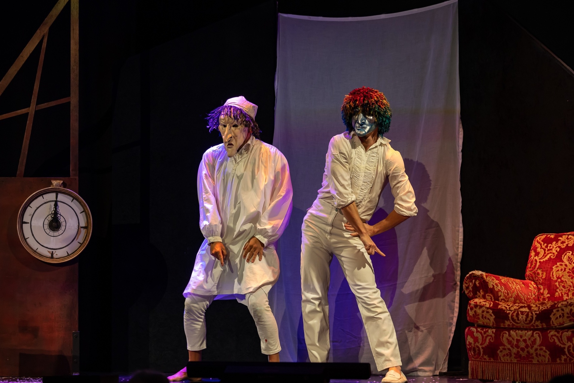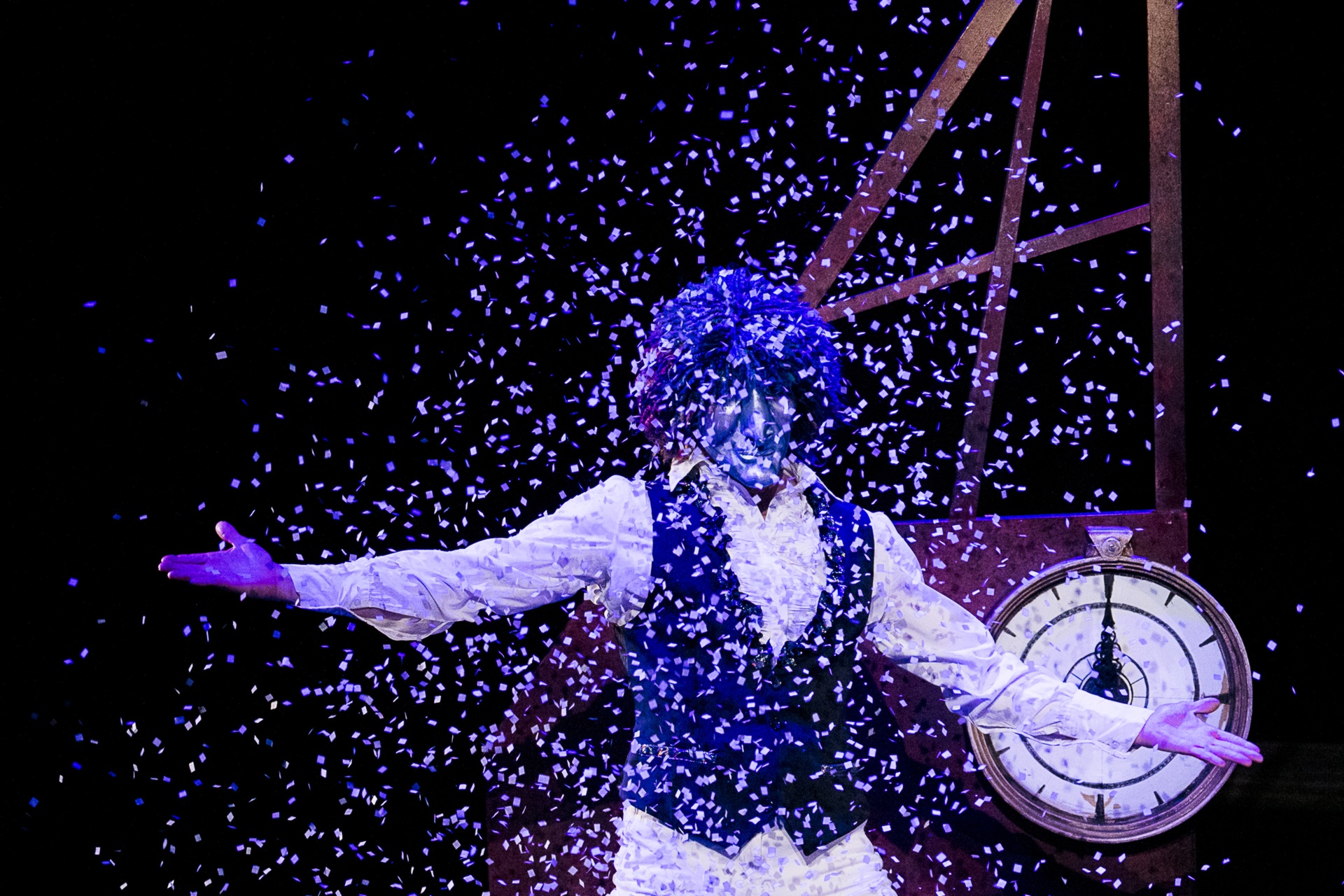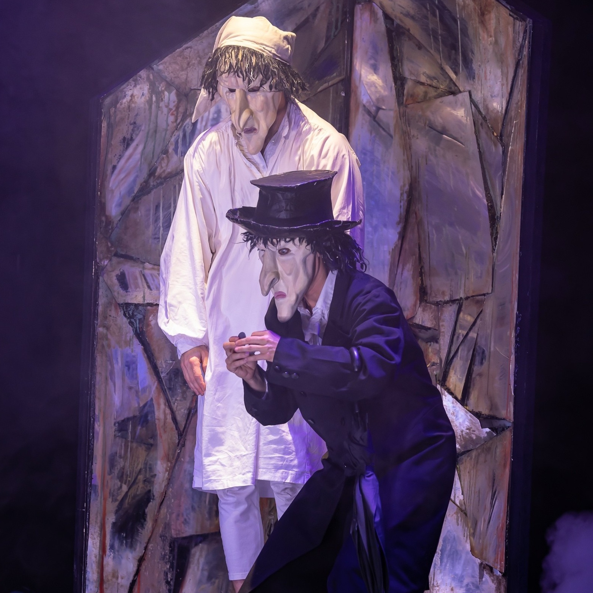 MC: Lo spettacolo è stato prodotto nel 2017 e abbiamo cominciato a portarlo nei teatri nello stesso anno. Sta avendo un ottimo successo: quest’anno raggiungeremo le 150 repliche. È un lavoro con undici maschere intere, alcuni inserti di narrazione e viene presentato in quattro lingue, a seconda del Paese in cui ci troviamo. L’idea di partenza è il testo di Dickens che abbiamo “tradotto” in un linguaggio prettamente visuale, come spesso facciamo: si parte da un testo letterario e si arriva a una forma scenica visiva. È una creazione collettiva: i tre attori in scena sono anche co-creatori.