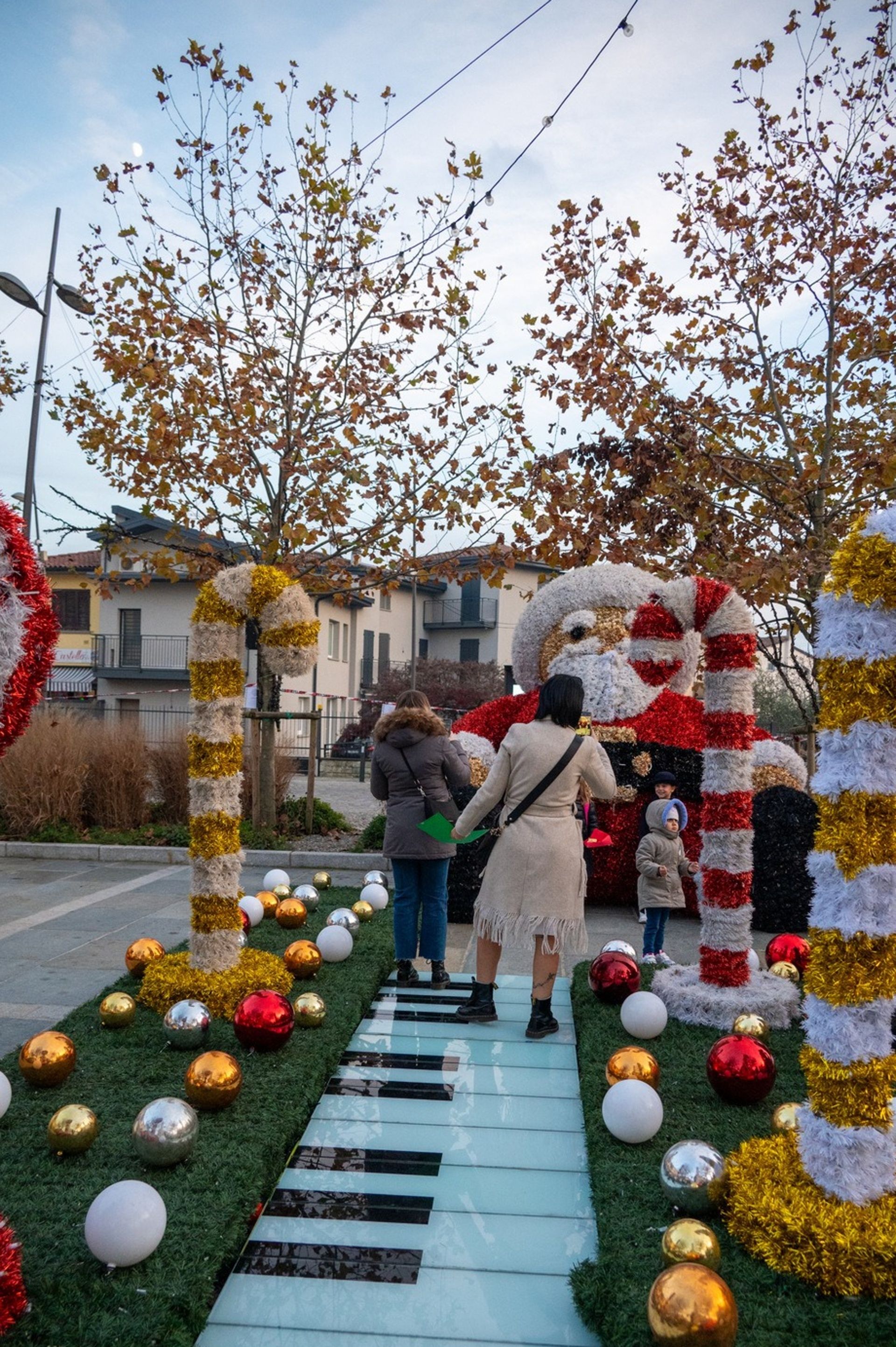 Il primo momento simbolico è stato l’inaugurazione delle luminarie e delle proiezioni: in programma domenica 30 novembre, Palosco ha visto la piazza centrale riempirsi di famiglie e bambini, attirati anche da una merenda condivisa e da una novità che ha conquistato i più piccoli: un pianoforte gigante e interattivo, lungo quattro metri, con tasti luminosi sul quale si poteva camminare e suonare con i piedi, componendo piccole melodie a ritmo di passi. «È stato preso d’assalto – racconta il sindaco – e accanto al pianoforte abbiamo posizionato anche Babbo Natale con la cassetta delle letterine. Un modo semplice ma efficace per coinvolgere i bambini e rendere la piazza un luogo vivo».
