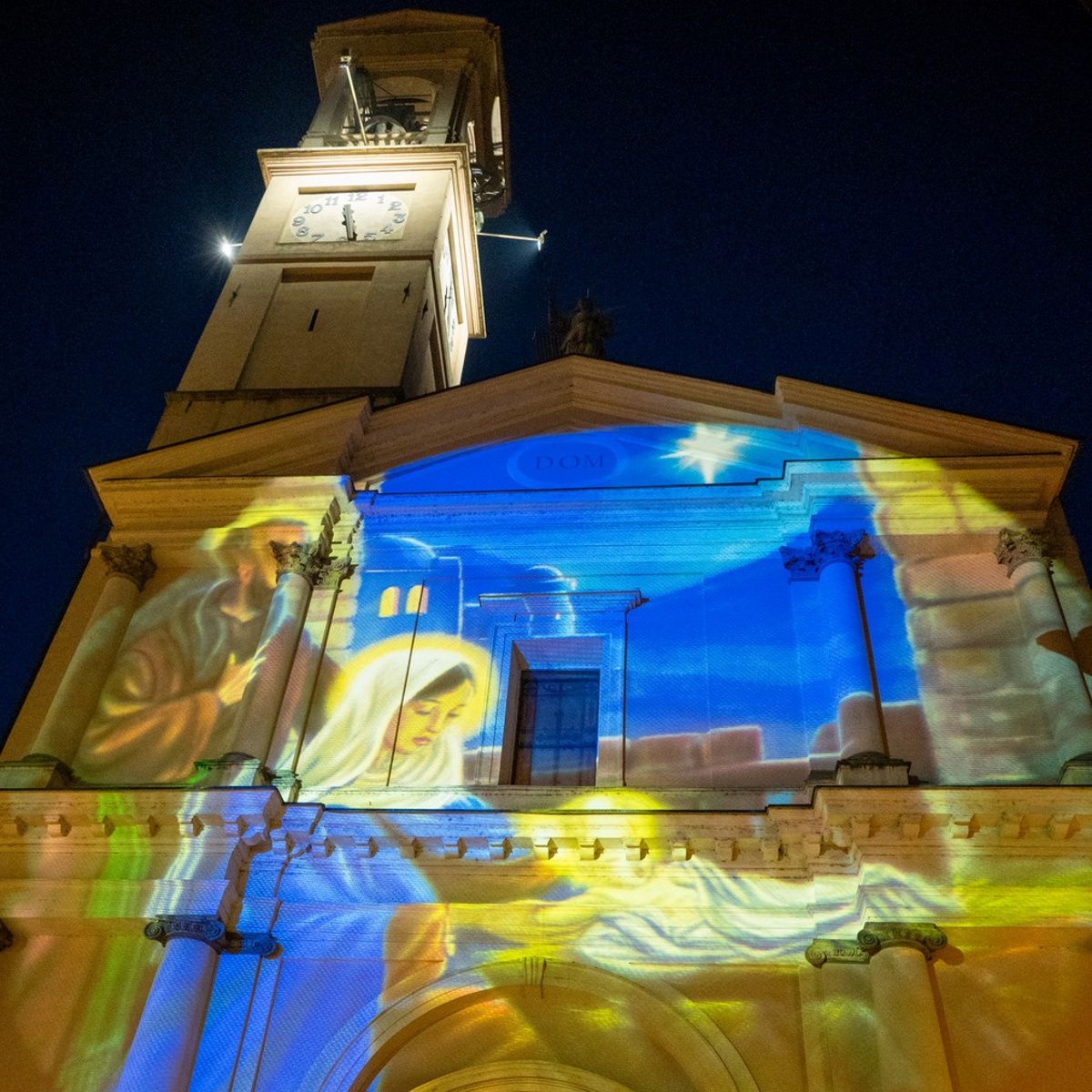 Anche quest’anno è stato riproposto il tema «I palazzi prendono vita», che nelle edizioni precedenti ha riscosso grande apprezzamento. Le proiezioni luminose stanno trasformando le facciate degli edifici in superfici animate, capaci di raccontare il Natale con immagini e colori: sul Palazzo comunale campeggia la scritta «Buone feste», sulla chiesa è proiettata una suggestiva immagine della Natività, mentre su altri edifici del centro compaiono decorazioni e simboli tipicamente natalizi. Alcune proiezioni sono statiche, altre in movimento e creano un vero e proprio effetto scenografico. Un’iniziativa che invita a guardare il paese con occhi diversi, riscoprendone angoli, dettagli e scorci che spesso vengono dati per scontati.