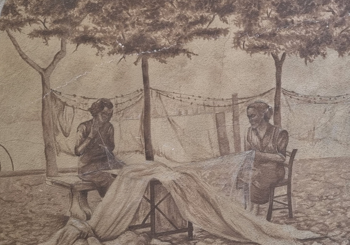 Approdati a Peschiera (186 metri), ci concediamo un breve passeggio sul lungolago prima di intrufolarci per le viuzze del borgo alla volta della Ceriola. Sul muro di una casa notiamo un dipinto che raffigura due donne intente ad annodare una rete da pesca. Possiamo considerarlo come un biglietto da visita per iniziare a conoscere la storia dei retai di Monte Isola, famosi nel mondo: pesca e reti viaggiano nella storia di pari passo. Nelle incisioni rupestri di Capo di Ponte, in Valle Camonica, spiccano alcune scene di pesca con l’utilizzo delle reti. La prima forme di pesca avvenivano con le fiocine ma la civiltà camuna testimonia che nell’Età del Ferro nel fiume Oglio e nel Sebino già si pescava con le reti.