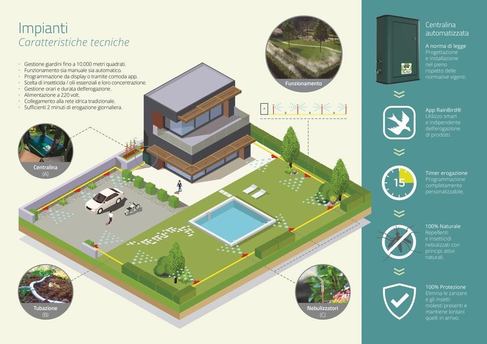 Quando i trattamenti spot non bastano, entra in gioco la continuità: in giardini e condomìni può aiutare un sistema automatico con centralina programmabile e ugelli perimetrali che nebulizzano per pochi secondi al giorno una miscela di acqua e basse percentuali di insetticida
