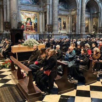 I FUNERALI. Tanti i rappresentanti del Comune di Bergamo e dell’associazionismo presenti in Santo Spirito per l’addio all’insegnante e promotrice del Circolo dei narratori.