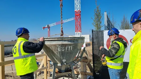 IL CANTIERE. All’aeroporto di Orio, mercoledì 19 marzo, la cerimonia di posa della prima pietra del nuovo Centro Servizi aeroportuali. Il cantiere è stato aperto nell’area di proprietà Sacbo, attigua al parcheggio P3.