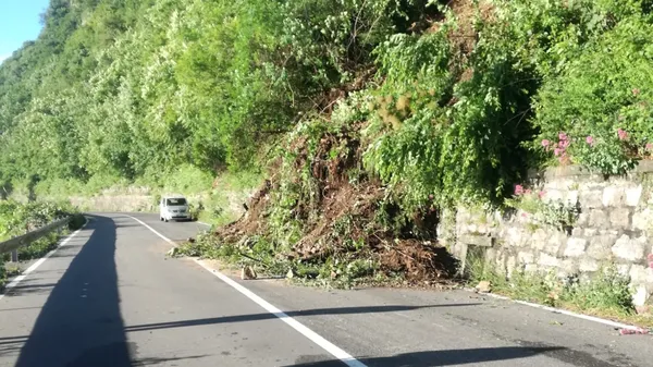VIABILITÀ. La mattina del 1° giugno un piccolo smottamento ha invaso la corsia della SS469 vicino alla località Porterone.