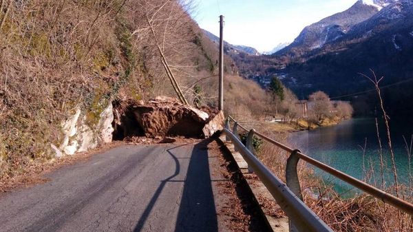 Circa 40 metri cubi di materiale hanno invaso completamente la via che porta
