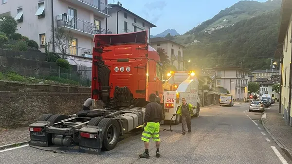 VIABILITÀ. A San Pellegrino un camion è rimasto incastrato su un tornante nella serata di giovedì 15 maggio. Venerdì con l’intervento di vigili del fuoco e dei tecnici, prima è stato spostato il rimorchio, poi solo verso le 22 anche la motrice. La strada è stata quindi riaperta completamente.