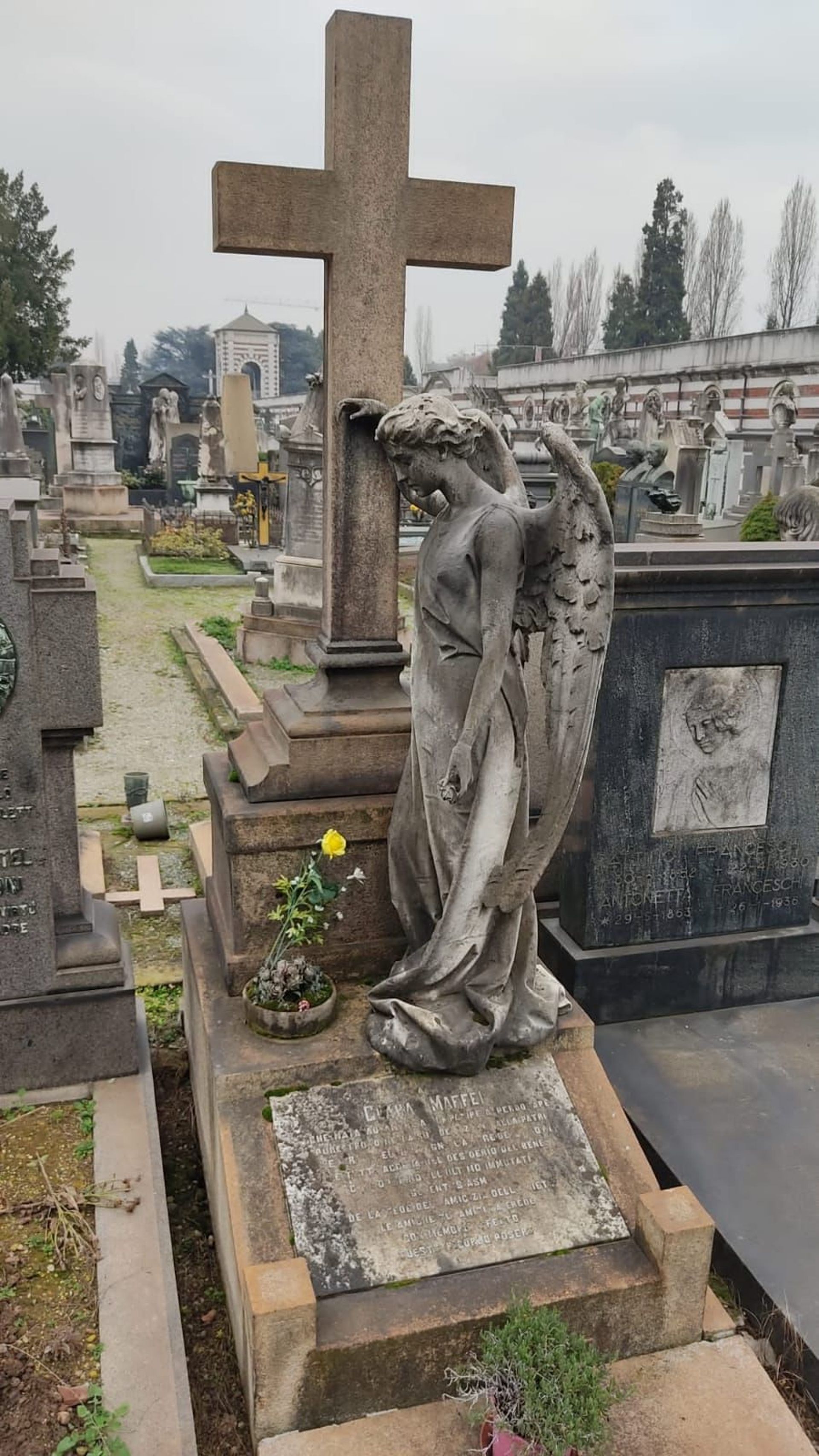 Alfa e omega sono la prima e l’ultima lettera dell’alfabeto greco. Sulle lapidi indicano l’inizio e la fine dell’esistenza. In alternativa per la nascita si può trovare una stella e per la morte una croce (data di morte) oppure soltanto la lettera N. (nato) e M. (morto). Pecore e agnelli indicano purezza, innocenza e sacrificio ed è spesso sulle tombe di bambini e giovani donne non ancora sposate. Nei cimiteri cristiani sono anche un riferimento alla figura di Cristo come agnus Dei, l’agnello di Dio. L’angelo compare sulle tombe in diverse forma ed età. Può essere scolpito a tuttotondo come una statua o inciso sulla lapide come bassorilievo. Spesso gli angeli sono in lacrime, si tengono la testa tra le mani o sono accasciati sulla tomba. Esprimono emozioni in cui i parenti possono riconoscersi e accompagnano l’anima nell’aldilà. Sono frequenti le immagini di angioletti sulle sepolture dei bambini. In ambito religioso sono le guide che portano le anime verso il Paradiso (versione religiosa degli psicopompi mitologici). Se suonano una tromba allora il riferimento è al giorno del giudizio. La colomba per i cristiani rappresenta lo Spirito Santo e sulle tombe indica innocenza e pace. La farfalla simboleggia l’anima umana, come nel mito greco di Psiche. Come un bruco che, dopo aver strisciato per terra diventa farfalla volando verso l’immensità del cielo, così anche l’anima umana, dopo la morte, tende verso l’eternità e verso Dio. Spesso viene rappresentata nel momento in cui esce dal proprio bozzolo e diventa simbolo di rinascita. L’uroboro è il serpente che si morde la coda ed è un simbolo antico. Sembra fermo, ma in realtà addenta la sua estremità e sta a indicare che l’energia si esaurisce e rinnova continuamente. Se su un monumento funebre si trova la decorazione di foglie di alloro scolpite, significa che lì sono sepolte personalità politiche importanti per la comunità locale. Le immagini sono ricche tanto quanto lo sono le vite degli uomini e questo è solo l’inizio di un viaggio alla loro scoperta.