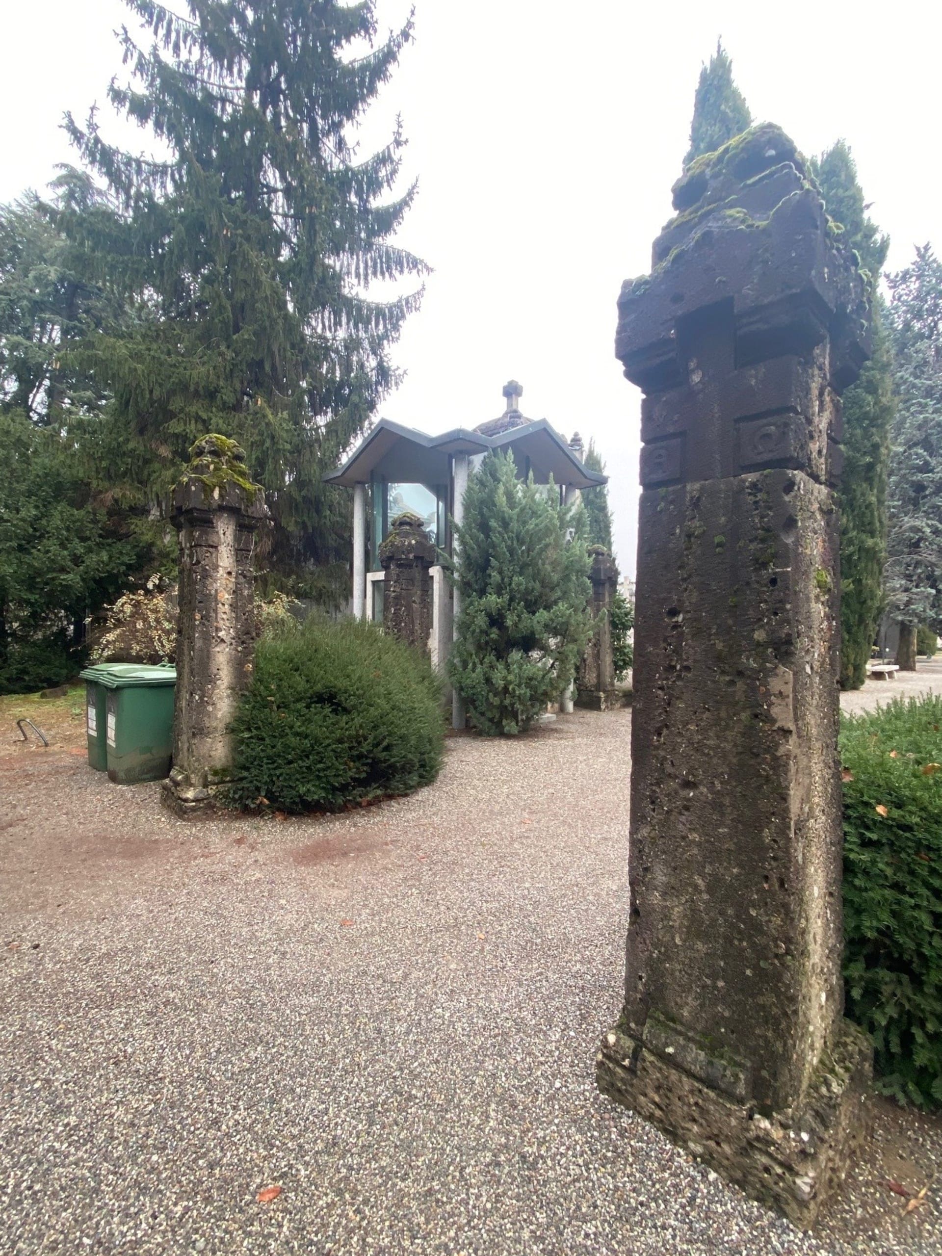 A Romano di Lombardia, cittadina della pianura bergamasca a lungo con tesa tra Venezia e il Ducato di Milano, si trova il raro cimitero della Gamba, precedente al l’Editto di Saint-Cloud.