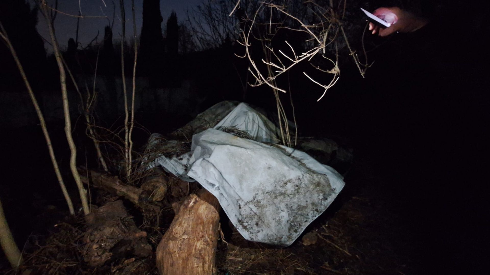 Forse nelle operazioni di travaso delle apparecchiature – si presume su un mezzo più capiente, forse un furgone – qualcosa è andato storto e, alla fine, la banda ha preferito abbandonare la merce nascondendola tra alcuni tronchi d’albero tagliati e coprendola sotto un grosso telo bianco. La visione delle immagini ha portato la Mobile proprio in questa zona di