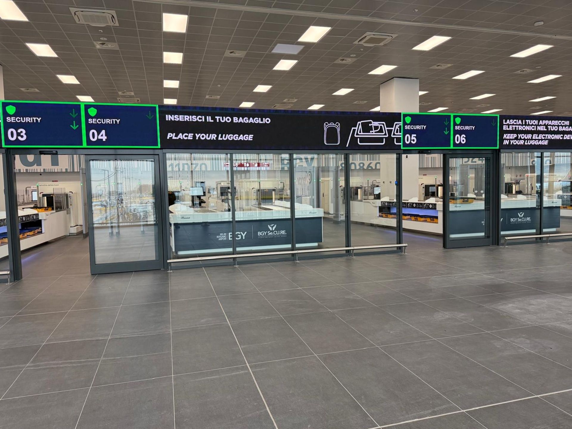 La novità più evidente riguarda i controlli di sicurezza. Le postazioni passano da 11 a 14, con due linee dedicate al fast track e alle famiglie e una per i passeggeri a mobilità ridotta. I macchinari di ultima generazione, dotati di algoritmi evoluti, consentiranno di lasciare nel bagaglio a mano dispositivi elettronici e liquidi fino a due litri. «Sono impianti modernissimi – sottolinea Sanga – che agevoleranno i tempi di verifica e impediranno la formazione di colli di bottiglia: grazie al sistema di telecamere e all’intelligenza artificiale la distribuzione dei flussi resterà sempre ordinata». Prima dell’accesso ai filtri ci sarà un passaggio automatizzato per la lettura della carta d’imbarco; superato il controllo, i passeggeri entreranno direttamente nel nuovo duty free walk-through, costeggiato da una grande vetrata che riporta verso l’area partenze già esistente.