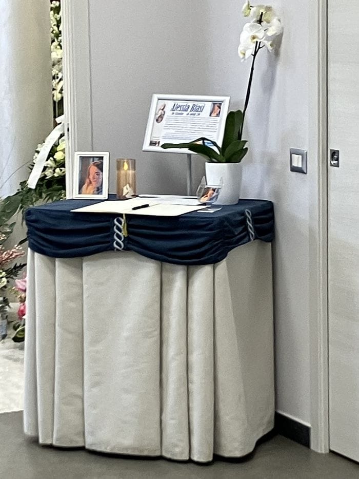 Tra i presenti anche alcuni Vigili del fuoco in divisa dell’Associazione, con un mezzo parcheggiato davanti alla chiesa, in ricordo del legame della famiglia con il Corpo. Al termine della cerimonia, all’esterno, un momento di raccoglimento accompagnato da una canzone di Ultimo, artista molto amato da Alessia e ricordato anche dalla sorella. Poi il cielo si è riempito di palloncini bianchi, a cui erano legate fotografie di momenti vissuti insieme a lei.