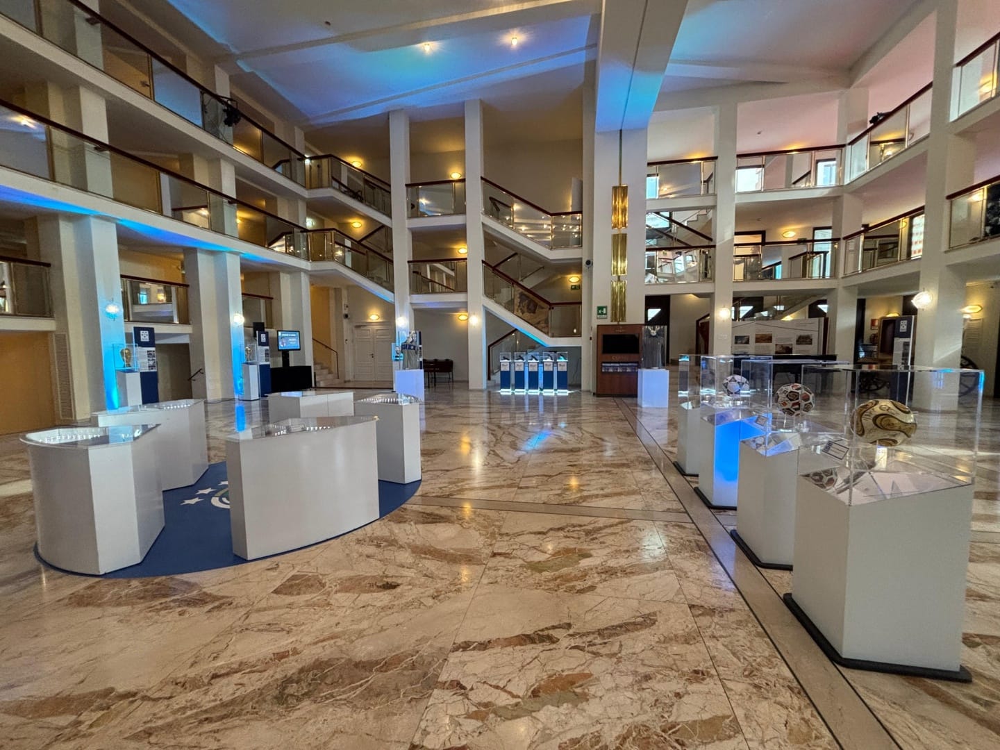 Il percorso espositivo permette di attraversare decenni di storia sportiva, che ha raggiunto l’olimpo con i quattro successi in Coppa del Mondo (Italia 1934, Francia 1938, Spagna 1982 e Germania 2006), ma ha conquistato anche gli Europei 1968 e 2020. Proprio gli inconfondibili trofei dorati fanno bella mostra nel foyer del Donizetti, che nei prossimi giorni aprirà le porte migliaia di tifosi, famiglie e ragazzi. La selezione dei cimeli, provenienti dal museo del calcio di Coverciano, comprende per esempio le maglie indossate in Nazionale da campioni del calibro di Dino Zoff, Roberto Boninsegna, Fabio Capello, Gianluca Vialli, Roberto Baggio, Francesco Totti e Gigi Buffon. Sono inoltre esposti i gagliardetti storici, come quello della finale dell’Europeo del 1968 tra Italia e Jugoslavia, e gli scarpini di Pietro Anastasi, Paolo Rossi, Franco Causio, Alessandro Del Piero e Andrea Pirlo. Nella mostra si nota anche l’evoluzione dei palloni da calcio, dall’esemplare utilizzato nel 1968 a quello di Italia 90, affiancati alle sfere vincenti calciate dagli azzurri nelle ultime due vittorie mondiali.