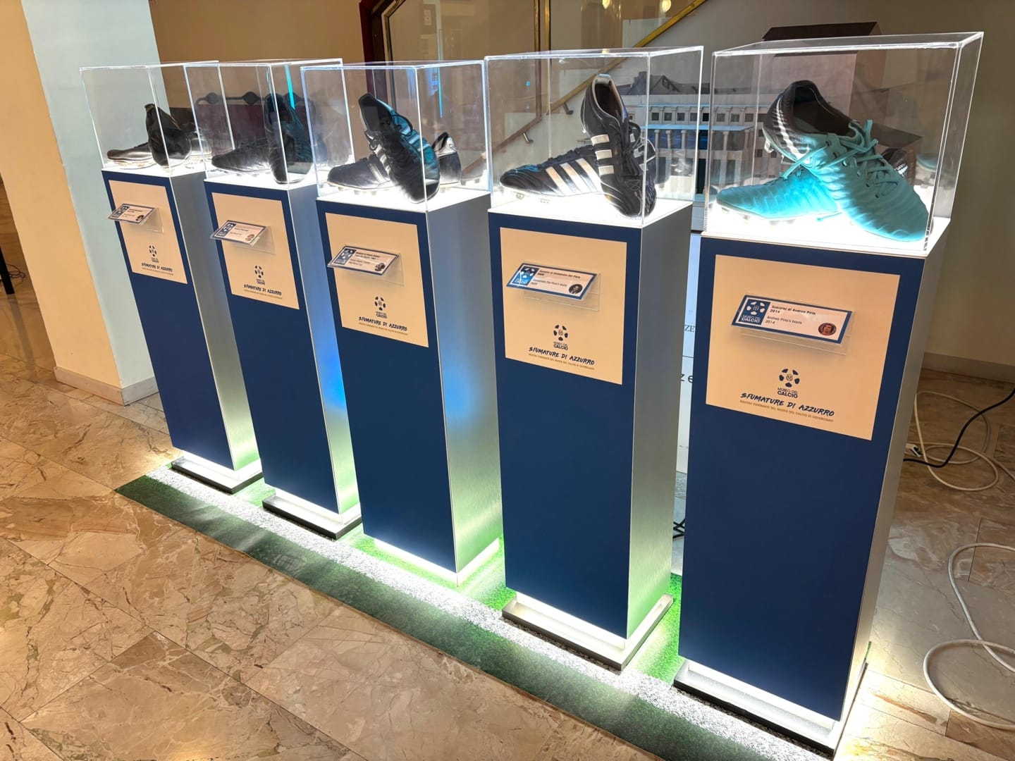 La selezione dei cimeli, provenienti dal museo del calcio di Coverciano, comprende per esempio le maglie indossate in Nazionale da campioni del calibro di Dino Zoff, Roberto Boninsegna, Fabio Capello, Gianluca Vialli, Roberto Baggio, Francesco Totti e Gigi Buffon