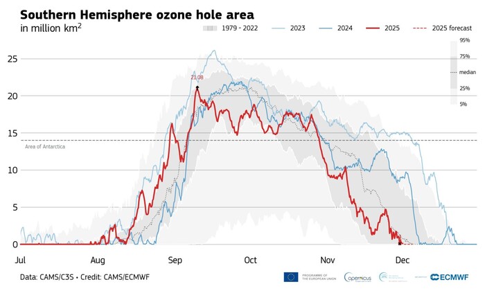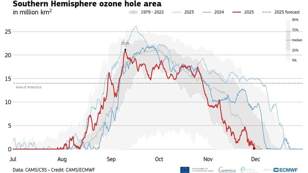 Copernicus, chiuso oggi il buco dell'ozono antartico 2025