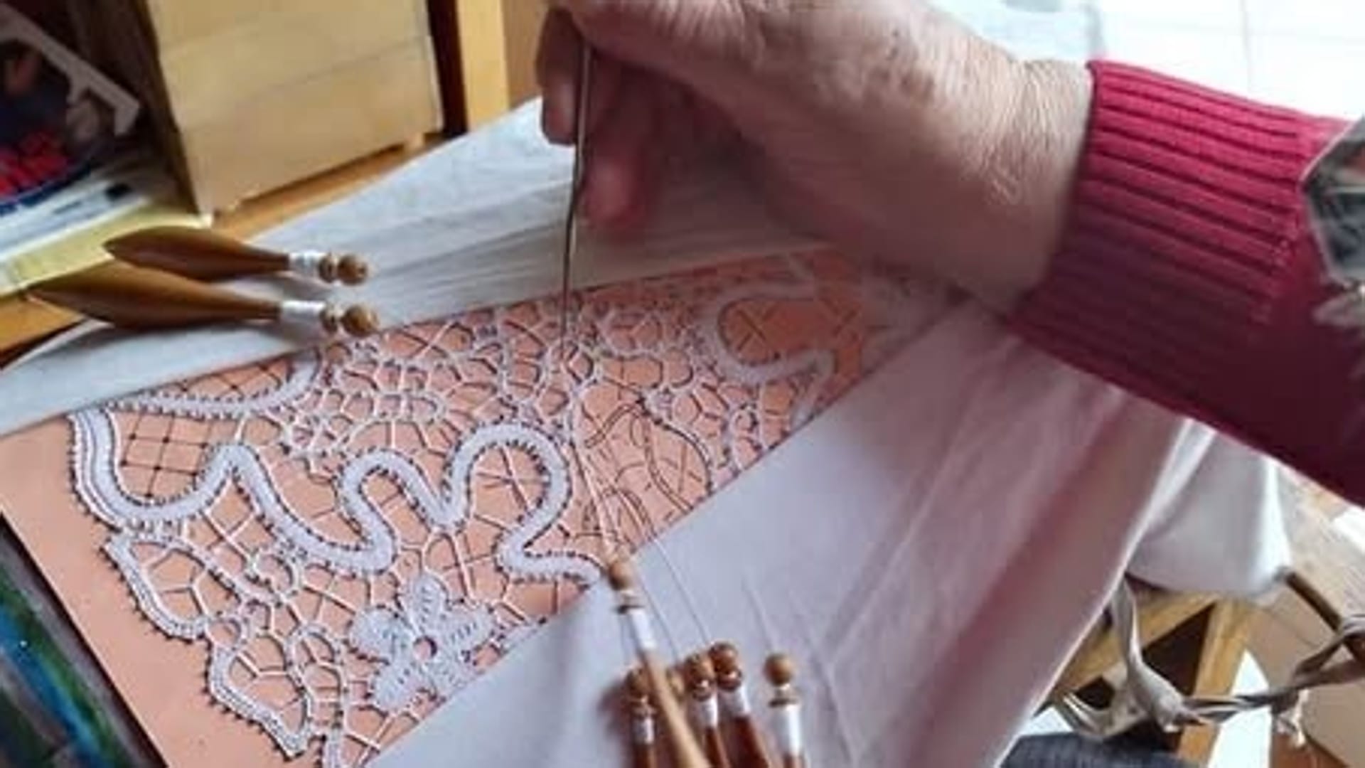 Camici con balze di pizzo, stole, casule, salviettine che il sacerdote usa per asciugarsi le mani, piccoli e delicati servizi d’altare, per la Messa, come tovaglie e tovaglioli copri calice in lino. Tutto tagliato, orlato, cucito, ricamato a mano facendo il punto pieno, il punto erba, il punto fatto con il tombolo o il chiacchierino fatto con la navetta. Tutti termini tecnici, questi, riferiti a vesti, paramenti, servizi liturgici impreziositi da ago e filo, una vera «arte per il Signore», non «quelle cose dozzinali che spesso si vedono», un’arte antica «che rischia di morirci in mano, perché le signore che lavorano con noi sono sempre meno. Ma noi dobbiamo scovare chi possiede questo mestiere».