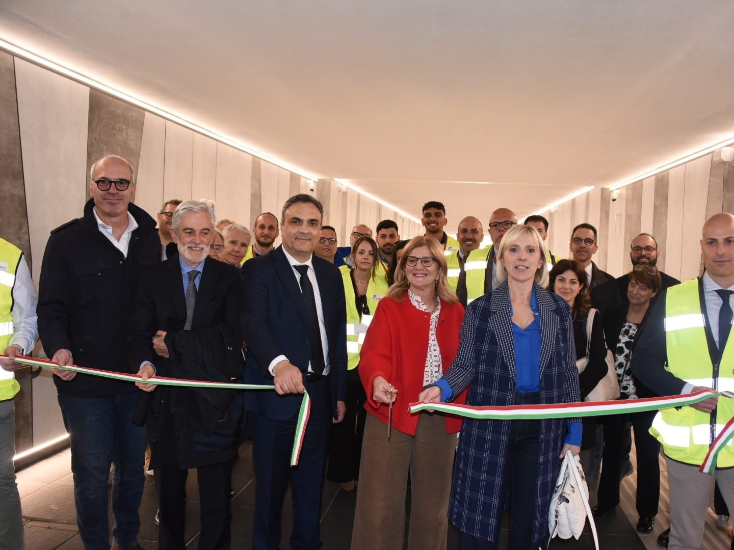 L’INAUGURAZIONE. Collega i due lati della città: presenti Terzi, Carnevali e Menta. Percorso di 160 metri con luci a Led e sistema di sicurezza potenziato.