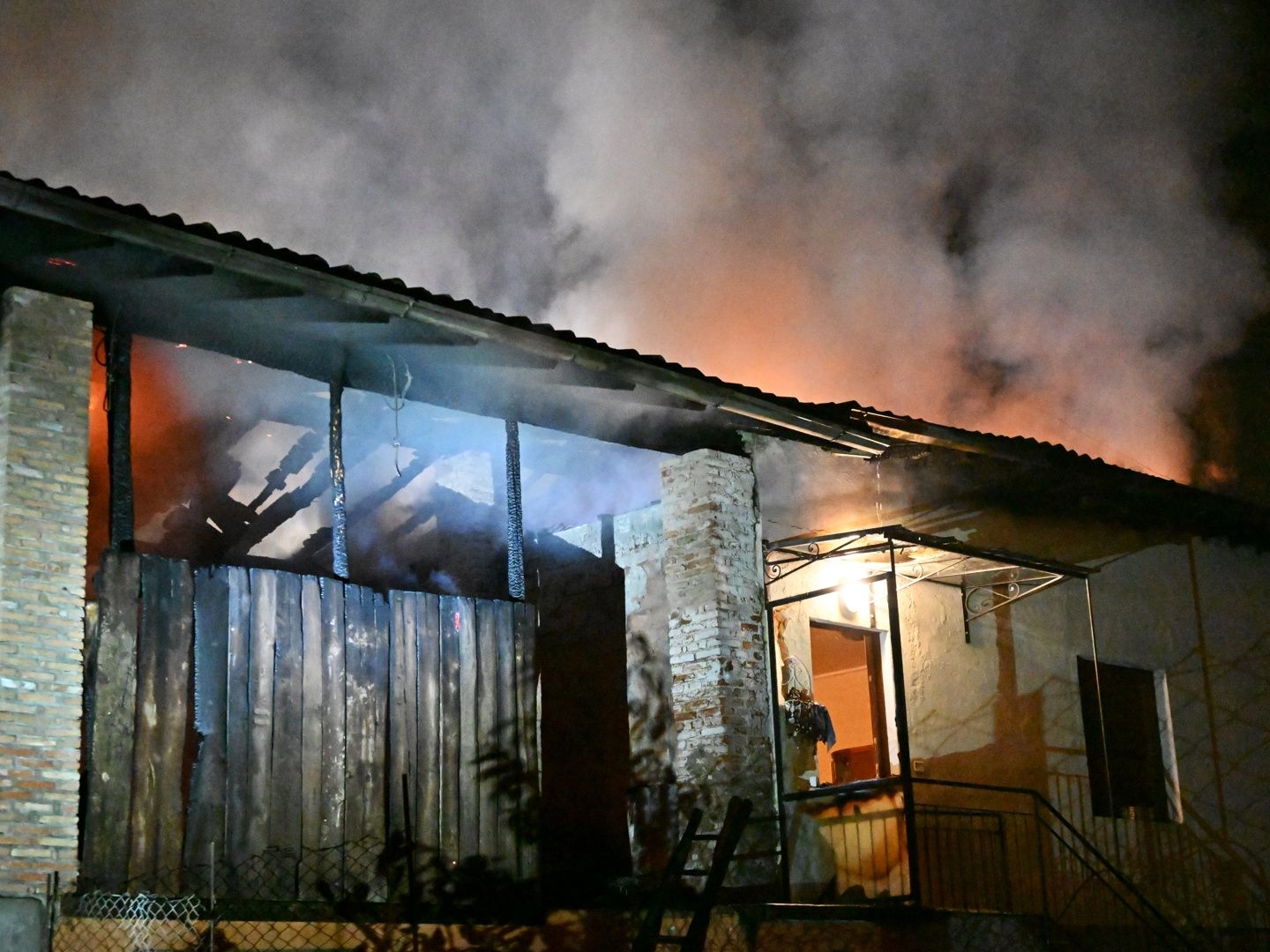 L’INCENDIO. Quattro mezzi dei vigili del fuoco per domare il rogo. Colpite due abitazioni, una in modo marginale. Non si registrano feriti.