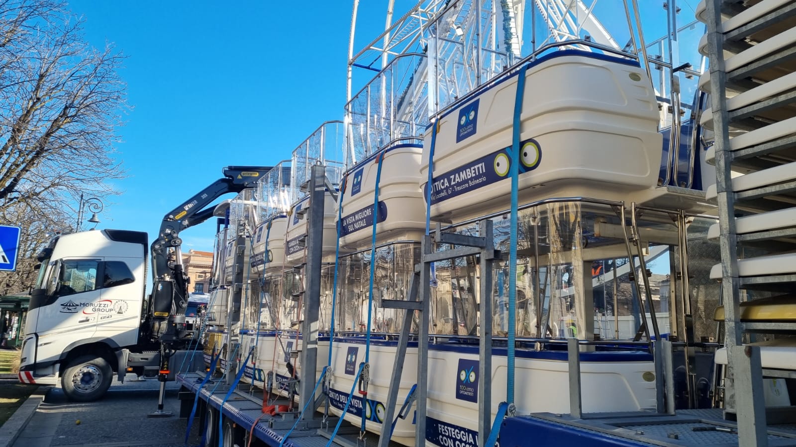 IN CENTRO. Lunedì 12 gennaio al via in centro a Bergamo le operazioni di smontaggio della ruota panoramica e del Villaggio di Natale.