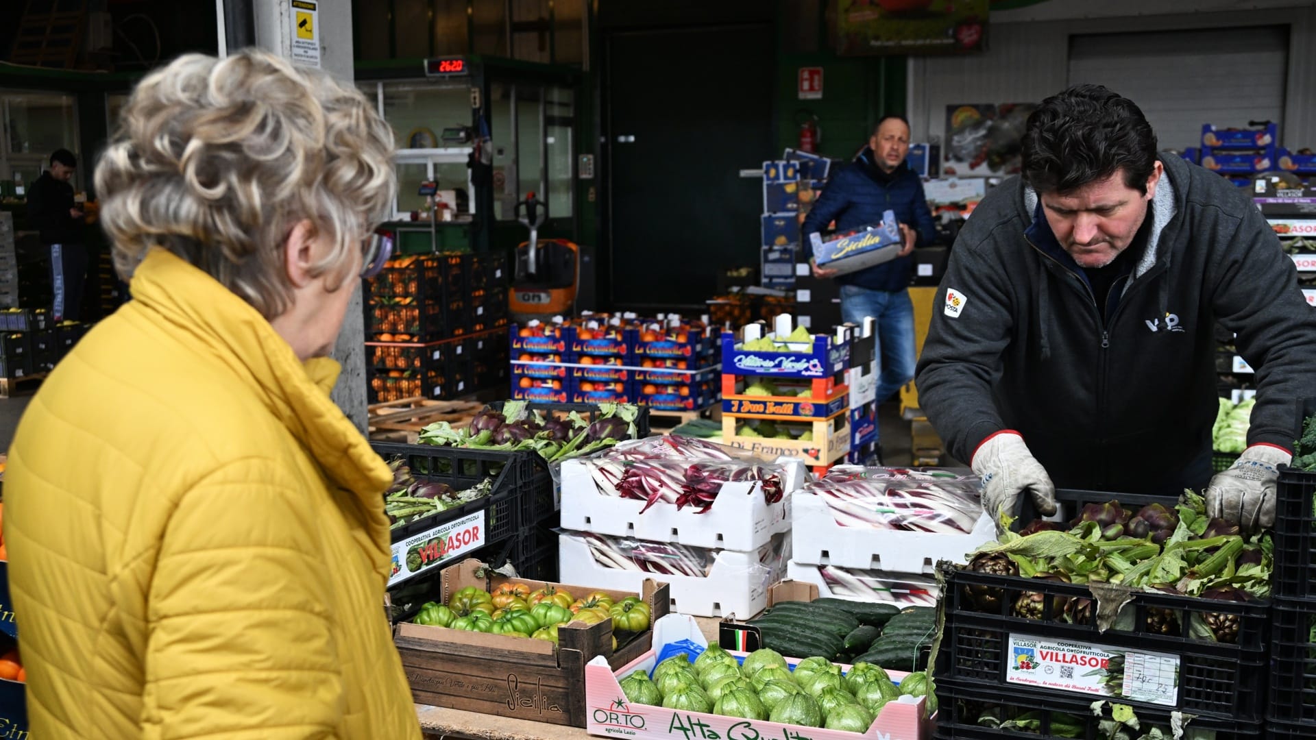 Il maltempo non ha fermato i tanti bergamaschi che anche sabato 14 marzo sono accorsi al Mercato ortofrutticolo di via Borgo Palazzo in cerca delle ultime offerte sulla frutta e la verdura dell’inverno e delle primizie di primavera. Ma tra i banchi stracolmi di persone e ceste, serpeggia il vento della guerra in Medio Oriente o, meglio, delle conseguenze del conflitto sui portafogli.