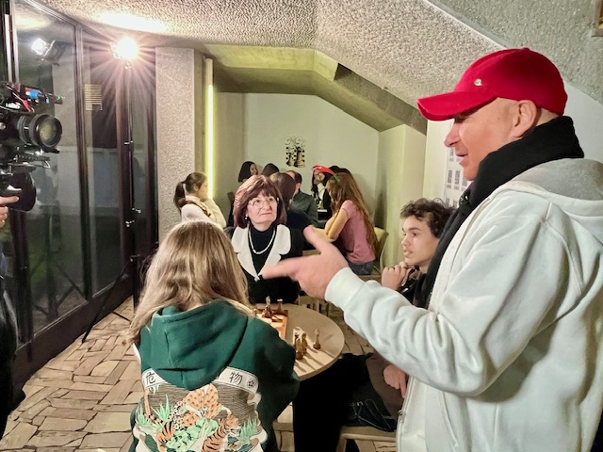 Tappa finale della troupe di RaiUno: i tavoli con gli scacchi. Seduta di fronte a re, torri e alfieri, insieme a diversi studenti e al professor Andrea Robert, coordinatore del gruppo, la dirigente scolastica Gloria Farisé scambia qualche battuta con il conduttore: mostra i suoi ragazzi «scacchisti», mentre socializzano e affinano la logica, e parla del Liceo «Falcone», mettendone in luce particolarità e qualità proprie dell’offerta formativa.