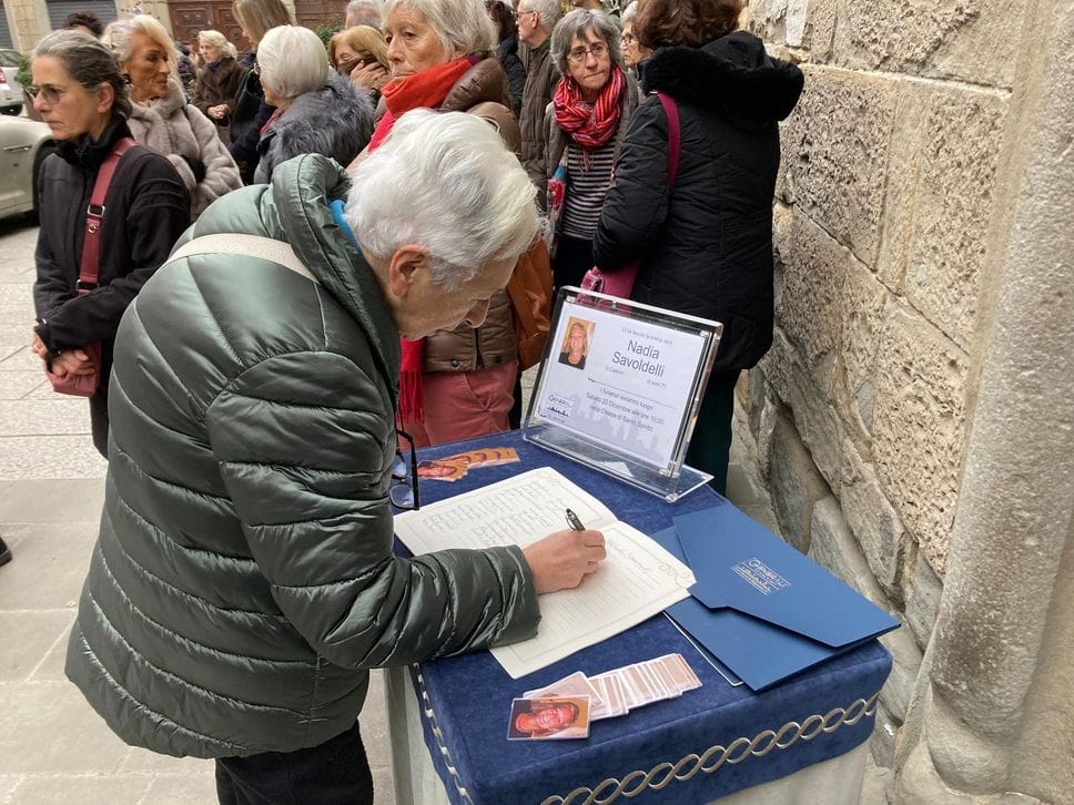 La chiesa di Santo Spirito in Pignolo si raccoglie nel dolore per l’ultimo saluto a Nadia Savoldelli, logopedista al centro Ananda, insegnante e anima instancabile del quartiere di Pignolo, oltre che vicepresidente del Consiglio delle donne del Comune di Bergamo. Una folla di amici, parenti e compagni di viaggio nel lungo cammino di vita di Nadia hanno preso parte questa mattina, sabato 20 dicembre, ai funerali dell’insegnante e presidente dell’associazione Il Cerchio di Gesso, scomparsa a 71 anni dopo una malattia.