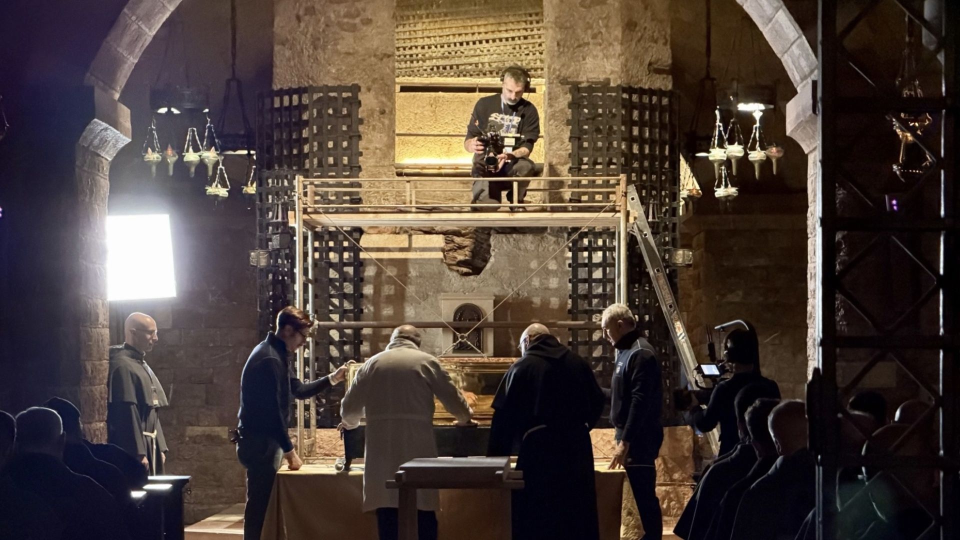 Il regista Omar Pesenti ha guidato la troupe nella documentazione: un momento di profonda emozione, vissuto nel silenzio e nella preghiera, che attraverso immagini curate con rigore, rispetto e sensibilità sta raggiungendo fedeli e comunità in tutto il mondo. Le riprese, destinate ai circuiti televisivi e ai media internazionali, oltre a diventare parte dell’archivio del Sacro Convento, accompagneranno le celebrazioni ufficiali e contribuiranno a raccontare la portata universale del messaggio francescano.