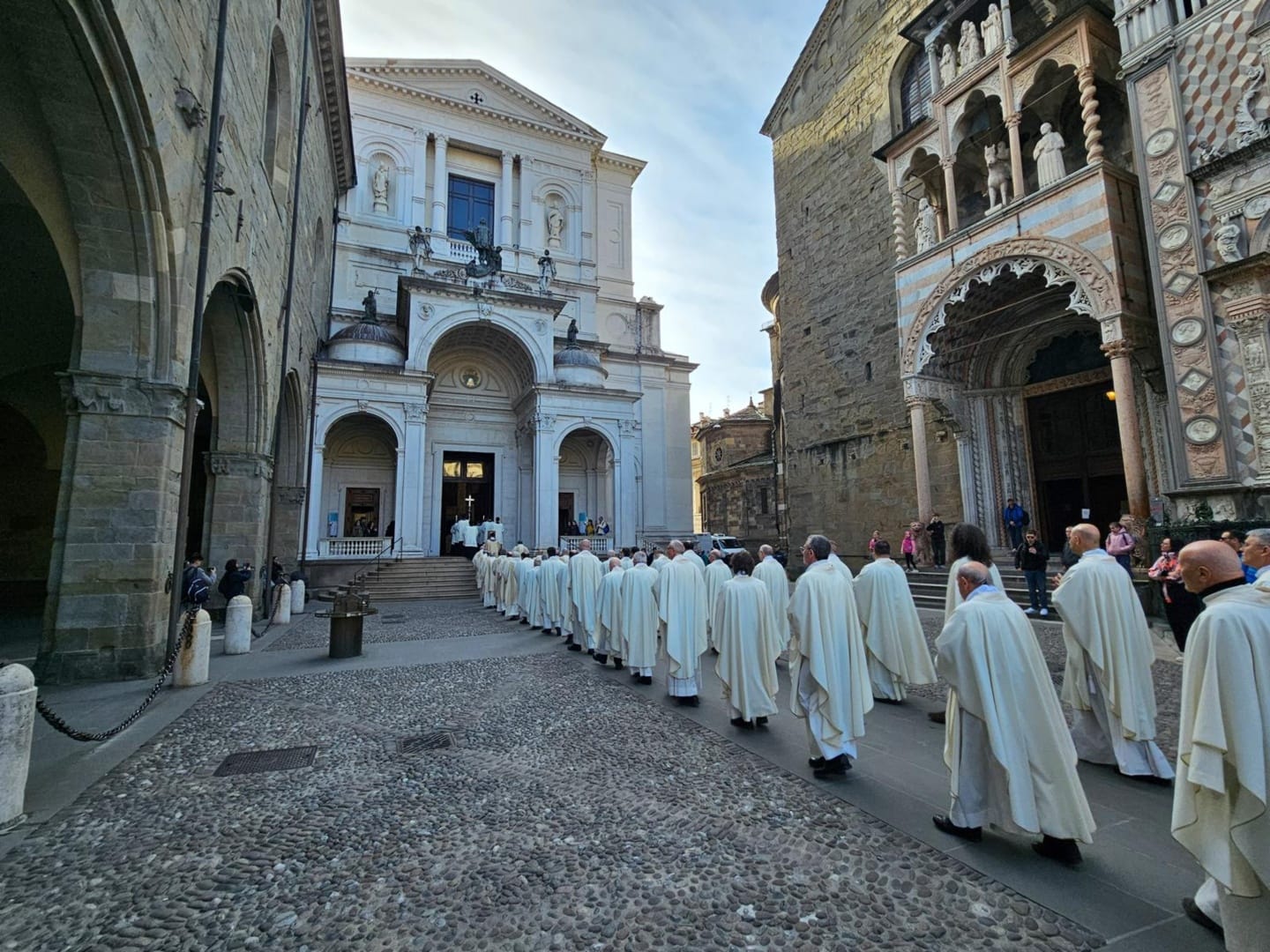 A questo prologo mattutino del Giovedì Santo, nel giorno in cui si ricordano l’Ultima Cena e l’istituzione del sacerdozio e dell’Eucaristia, monsignor Beschi ha concelebrato, fra gli altri, assieme all’Arcivescovo Paolo Rudelli di Gandino, da poco nominato Sostituto per gli Affari generali della Segreteria di Stato vaticana, al Nunzio Apostolico di Papua e Nuova Guinea monsignor Maurizio Bravi, ai Vescovi emeriti Ottorino Assolari, Carlo Mazza e Raffaello Martinelli, oltre all’abate di Pontida dom Giordano Rota e al vicario generale diocesano monsignor Davide Pelucchi.