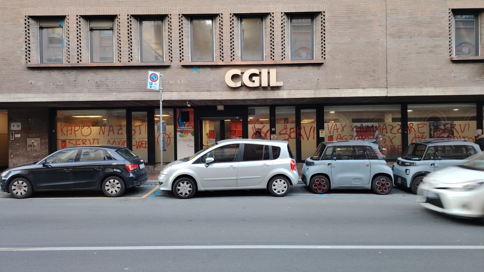 Scritte «no vax», imbrattata la sede della Cgil di Bergamo