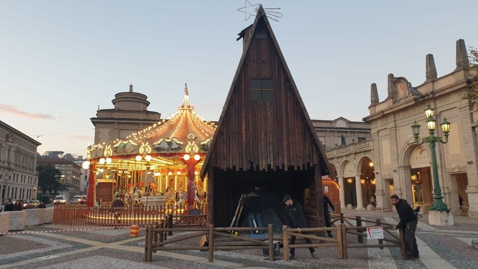 È stata allestita oggi, martedì 24 novembre, la Capanna de L’Eco di Bergamo sul Sentierone: sarà visitabile fino al 7 gennaio.