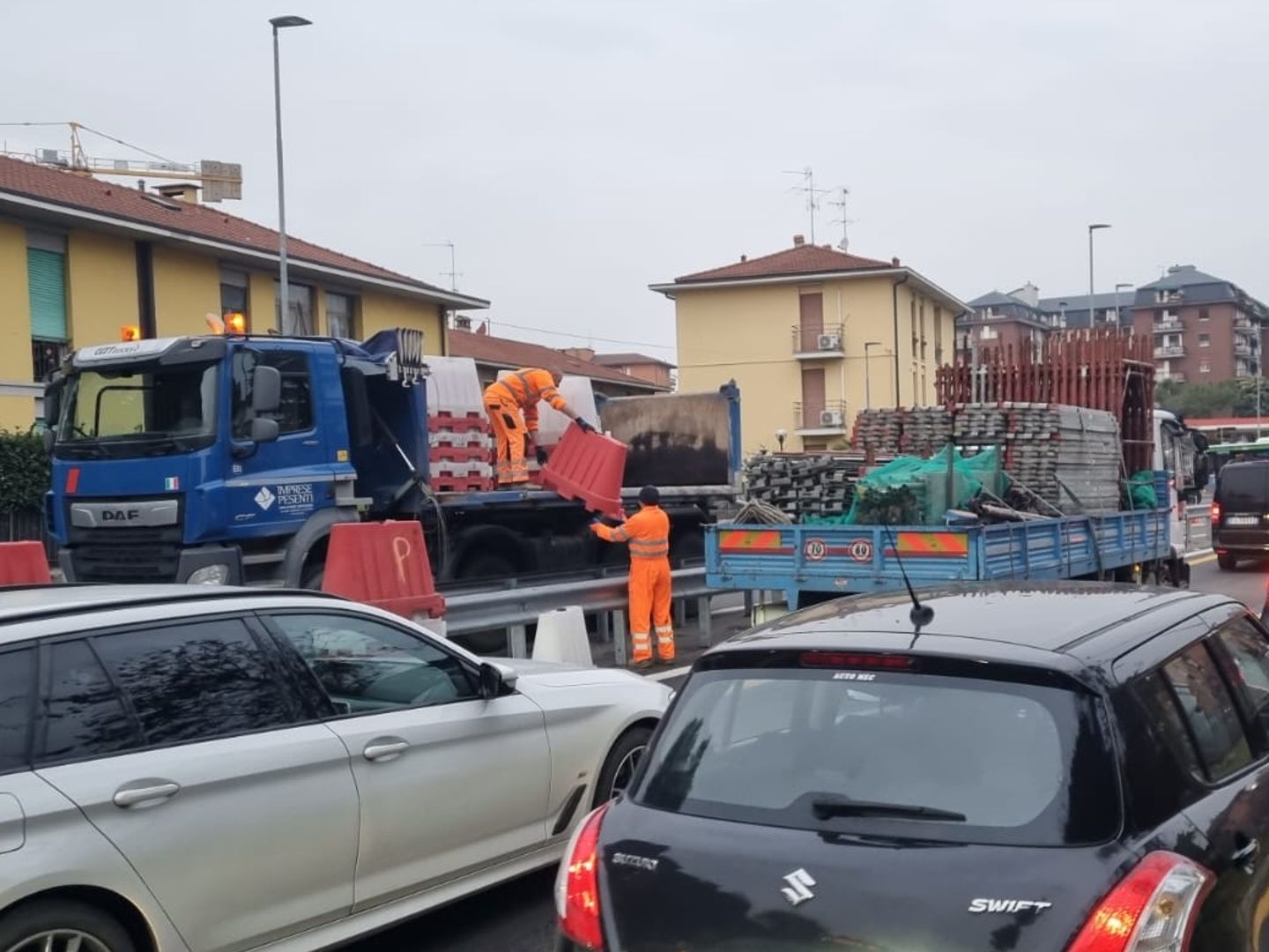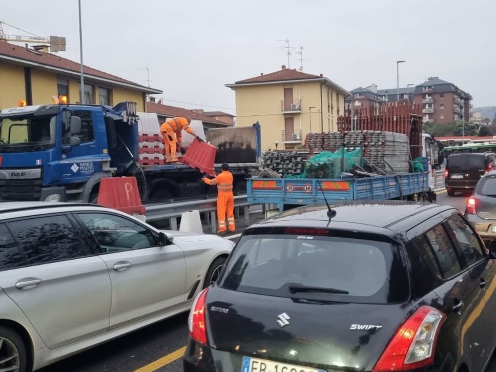 La giornata di lunedì rappresenta il vero banco di prova per valutare l’impatto del cantiere, ora posizionato nella parte centrale della carreggiata. Le corsie restano due per senso di marcia, ma risultano più strette e spostate verso l’esterno, una modifica necessaria per consentire la contemporanea circolazione dei veicoli e l’avanzamento dei lavori attorno allo spartitraffico. Possibili disagi sono attesi soprattutto nelle ore di punta serali, anche alla luce dei cantieri del raddoppio ferroviario e della chiusura del ponte di via San Bernardino, che concentrano su questo asse una quota importante di traffico.