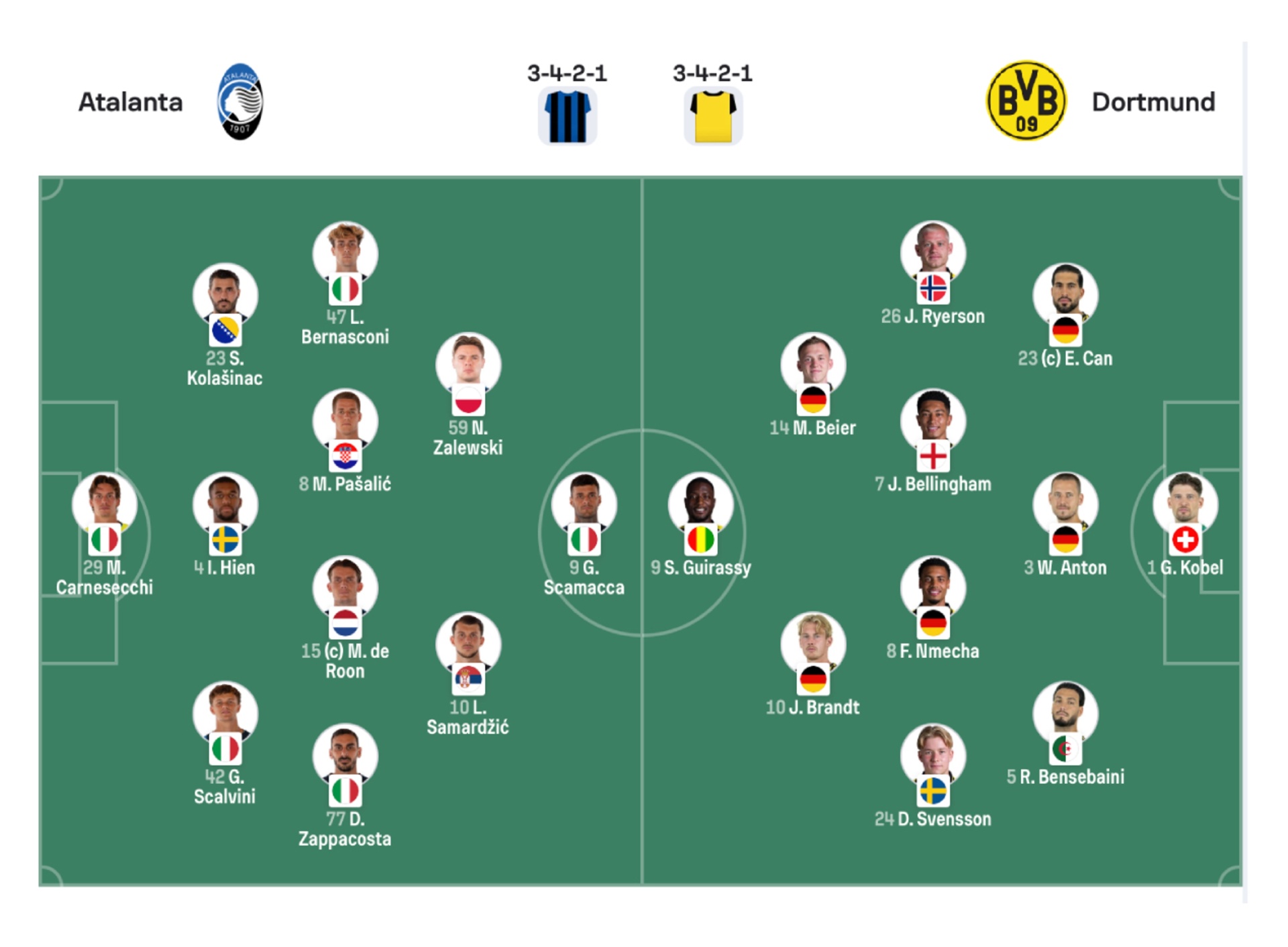 Le scelte iniziali hanno confermato quanto era filtrato alla vigilia. Palladino ha confermato il 3-4-2-1 costruito per dare ampiezza e ritmo alla rimonta dopo lo 0-2 dell’andata, con Carnesecchi tra i pali e la difesa guidata da Hien, chiamato ad annullare Guirassy. Zappacosta e Bernasconi sono stati scelti per fornire spinta sulle fasce, mentre de Roon ha assicurato equilibrio davanti alla difesa. Pasalic è rimasto mezzala per inserimenti e seconde palle, e dietro a Scamacca, è stata schierata la coppia formata da Samardzic e Zalewski con il compito di muoversi tra le linee per creare rifiniture e strappi verticali. Le parole di Palladino alla vigilia evidenziavano proprio la volontà di provare l’impresa dal primo all’ultimo minuto, con un clima “infuocato” allo stadio e la consapevolezza di poter contare sull’energia ritrovata dopo la rimonta col Napoli. Sul fronte del Borussia Dortmund Kovac ha mantenuto anch’egli il 3-4-2-1, puntando su un reparto difensivo più fisico e solido con Anton e Bensebaini ai lati, e Ryerson e Svensson come quinti per offrire spinta ma anche ripiegamenti rapidi. In mediana Nmecha e Bellingham hanno garantito equilibrio e progressione, con Brandt e Beier alle spalle di Guirassy per connettere in rifinitura e attaccare la profondità. Dalle dichiarazioni del tecnico tedesco era emersa fiducia nella solidità della sua squadra, sottolineando che il suo Dortmund era pronto a gestire la qualificazione con esperienza e scelte pragmatiche.