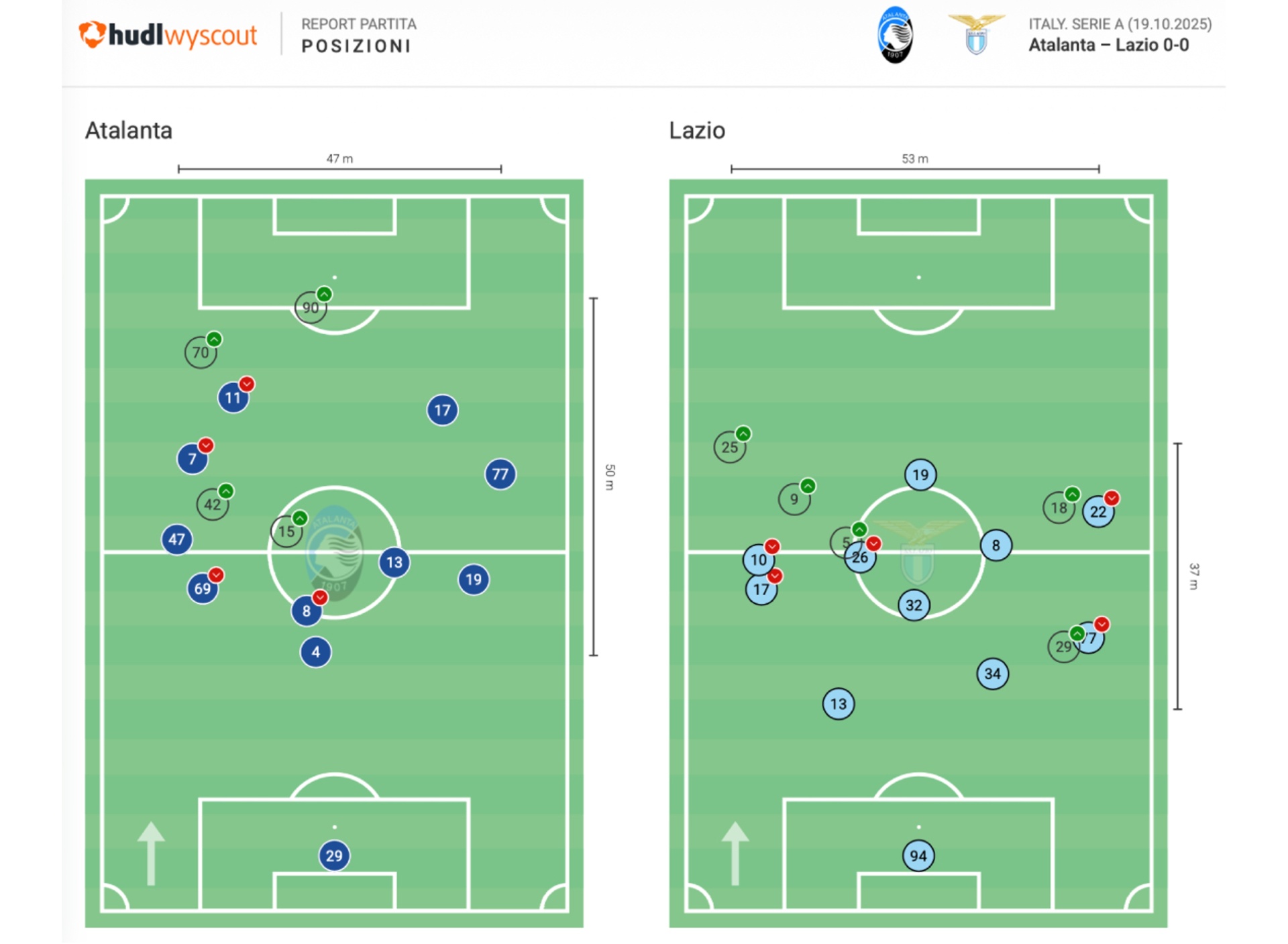 L’Atalanta ha gestito lunghi possessi, ma la mancanza di una punta capace di fissare i centrali e di dare profondità ha reso sterile la circolazione, confinandola spesso al perimetro e alle catene laterali. La Lazio, invece, ha tratto vantaggio da questa struttura, perché ha potuto mantenere i propri difensori nella zona di comfort, senza dover difendere a campo aperto. Ogni volta che l’Atalanta ha provato a velocizzare il gioco o a cercare l’inserimento di un trequartista, il muro biancoceleste ha assorbito l’urto e chiuso i corridoi centrali.