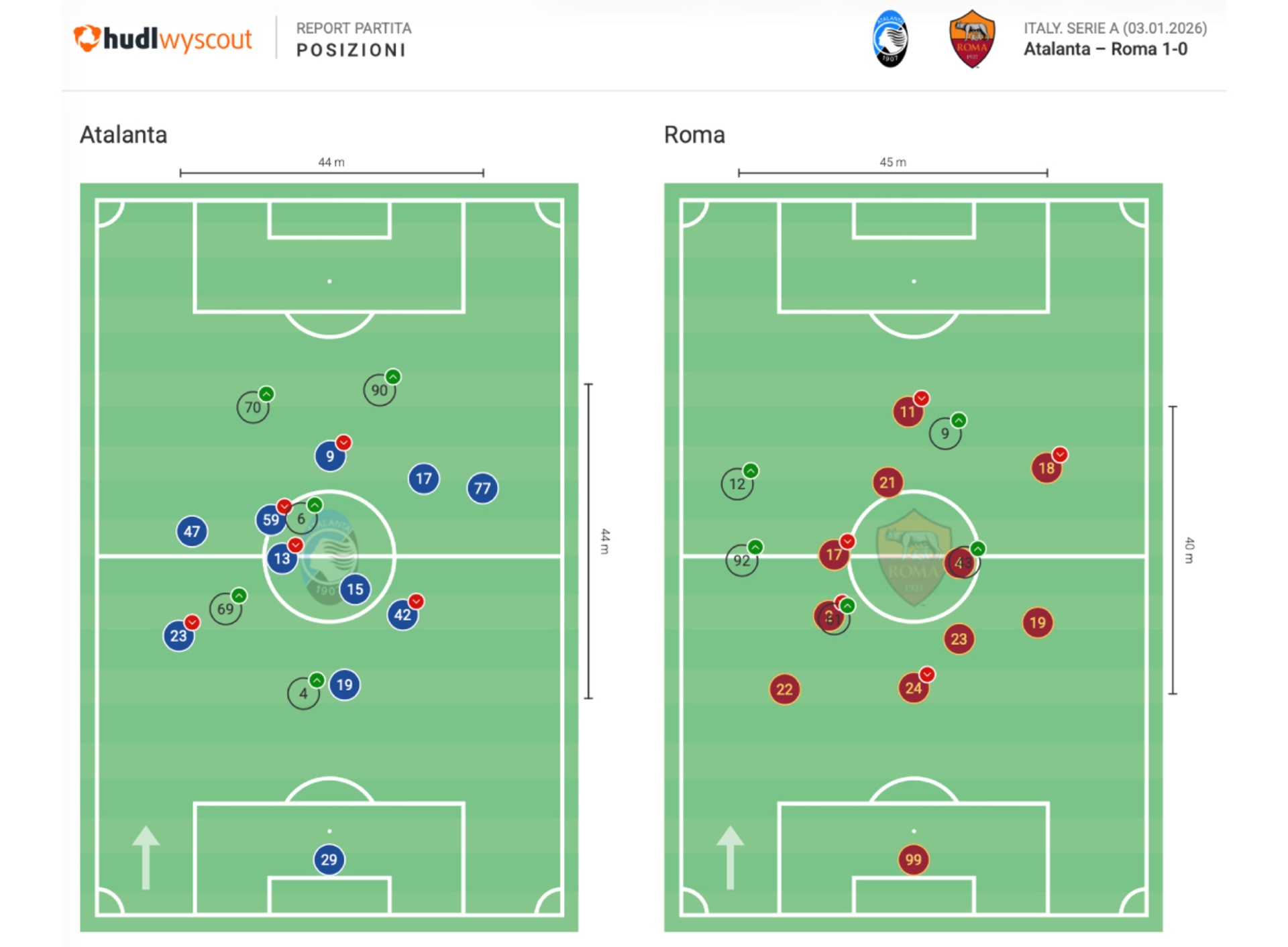 L’Atalanta ha iniziato la gara con un’intensità molto alta, interpretando i moduli speculari in modo più aggressivo rispetto alla Roma. La squadra di Palladino ha accettato i duelli a uomo voluti da Gasperini ma li ha affrontati con maggiore compattezza, riuscendo spesso a vincere i contrasti e a sporcare le prime linee di pressione giallorosse. La Roma ha provato a tenere il baricentro alto e a forzare situazioni di gioco lungo per poi riaggredire la seconda palla, ma l’Atalanta ha letto bene questo piano, mantenendo distanze corte e una struttura sempre equilibrata.